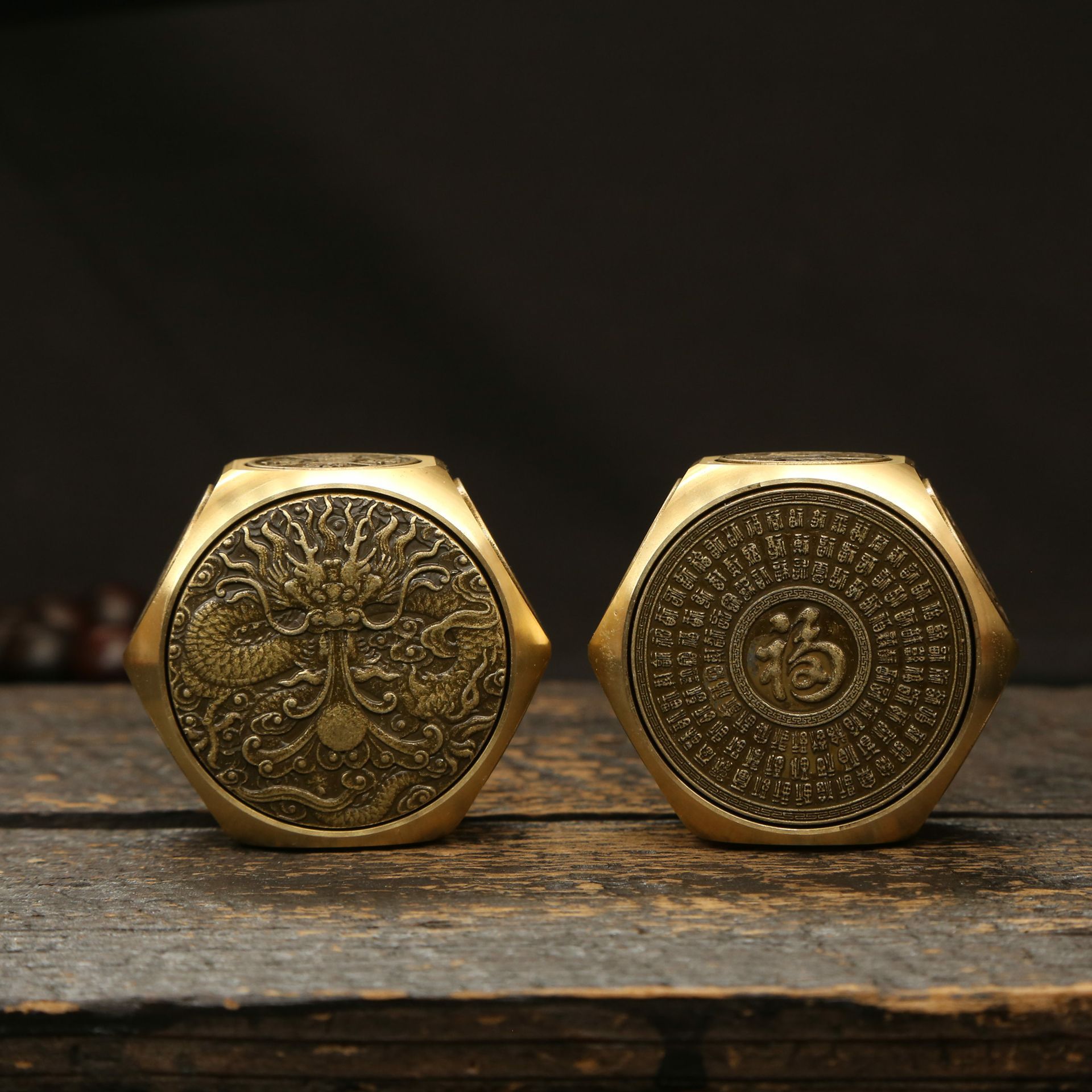 황동 8 면 회전 공예 장식 거실 사무실 입구 데스크탑 장식 구리 공예