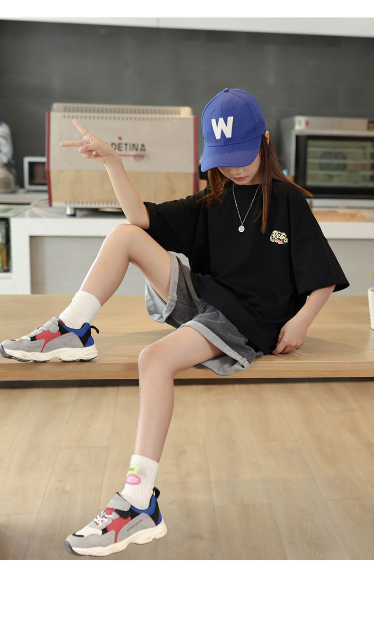 소녀 반팔 티셔츠 앞뒤 아동복 여름 인쇄 새 반팔 셔츠 소녀 여름 의류 튀긴 거리 중 큰 아이들