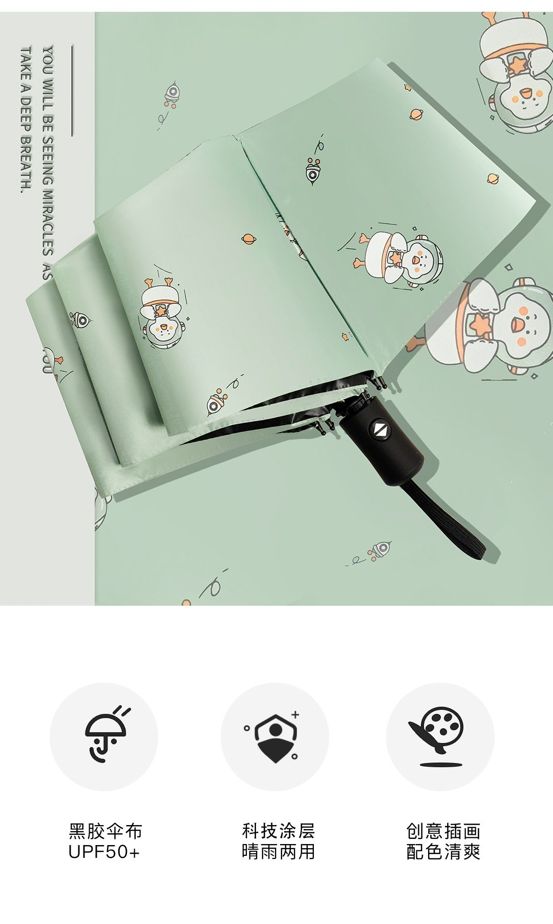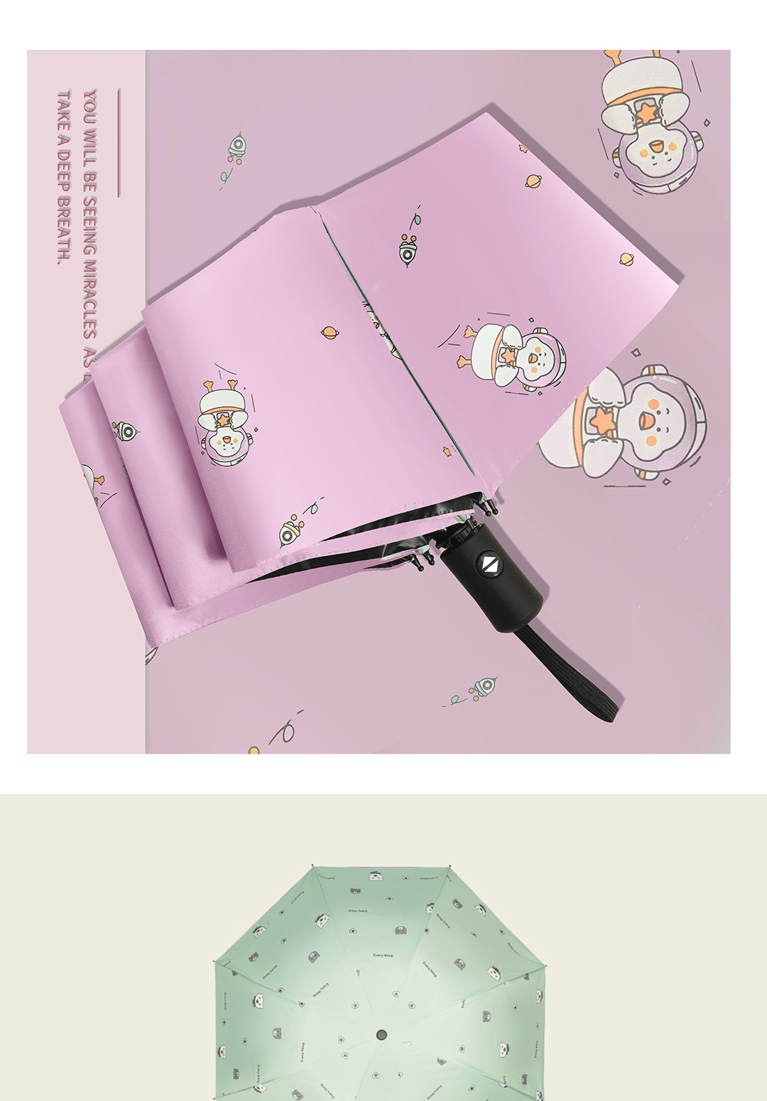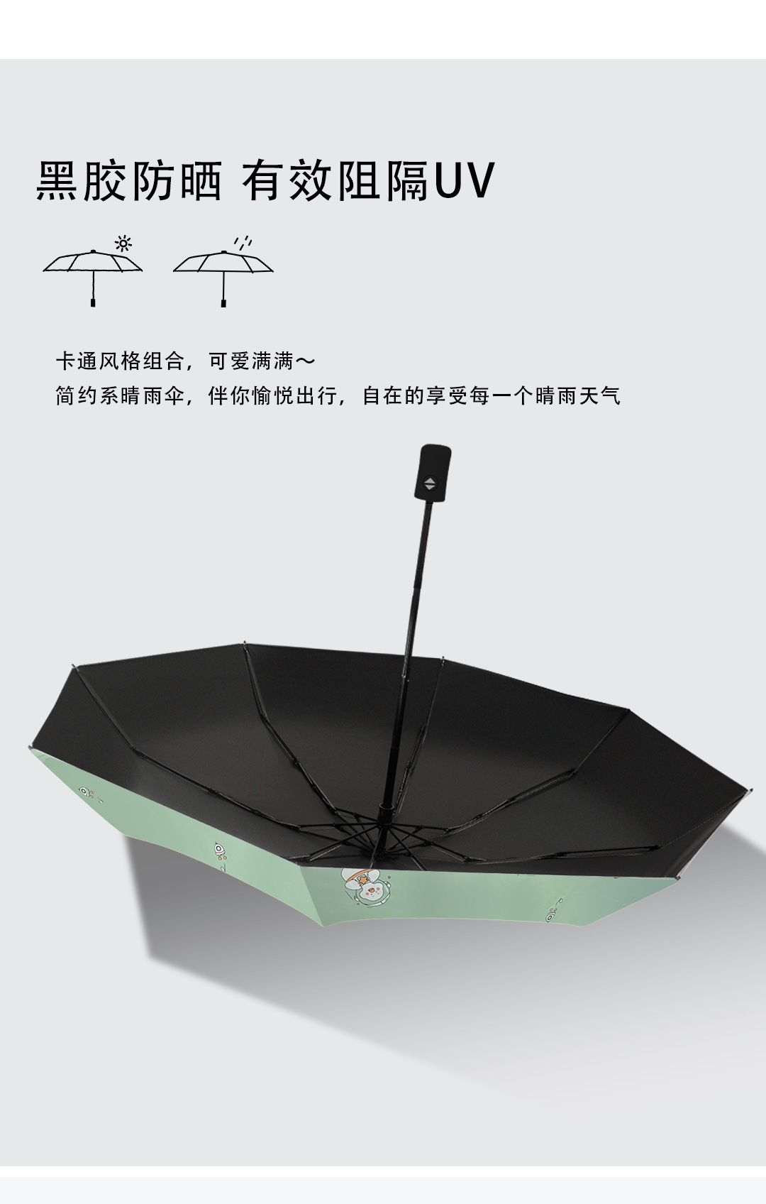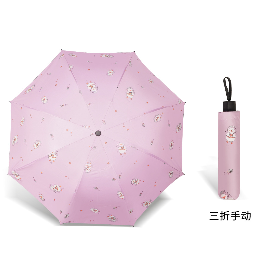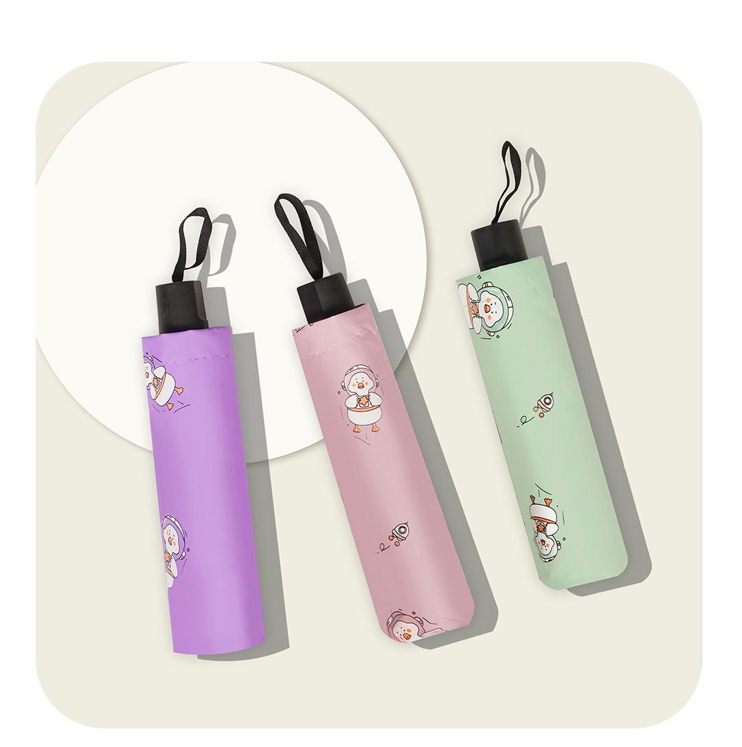 우산 자외선 차단 태양 우산 접히는 작은 신선한 비닐 만화 동물 비와 비 이중 사용 우산