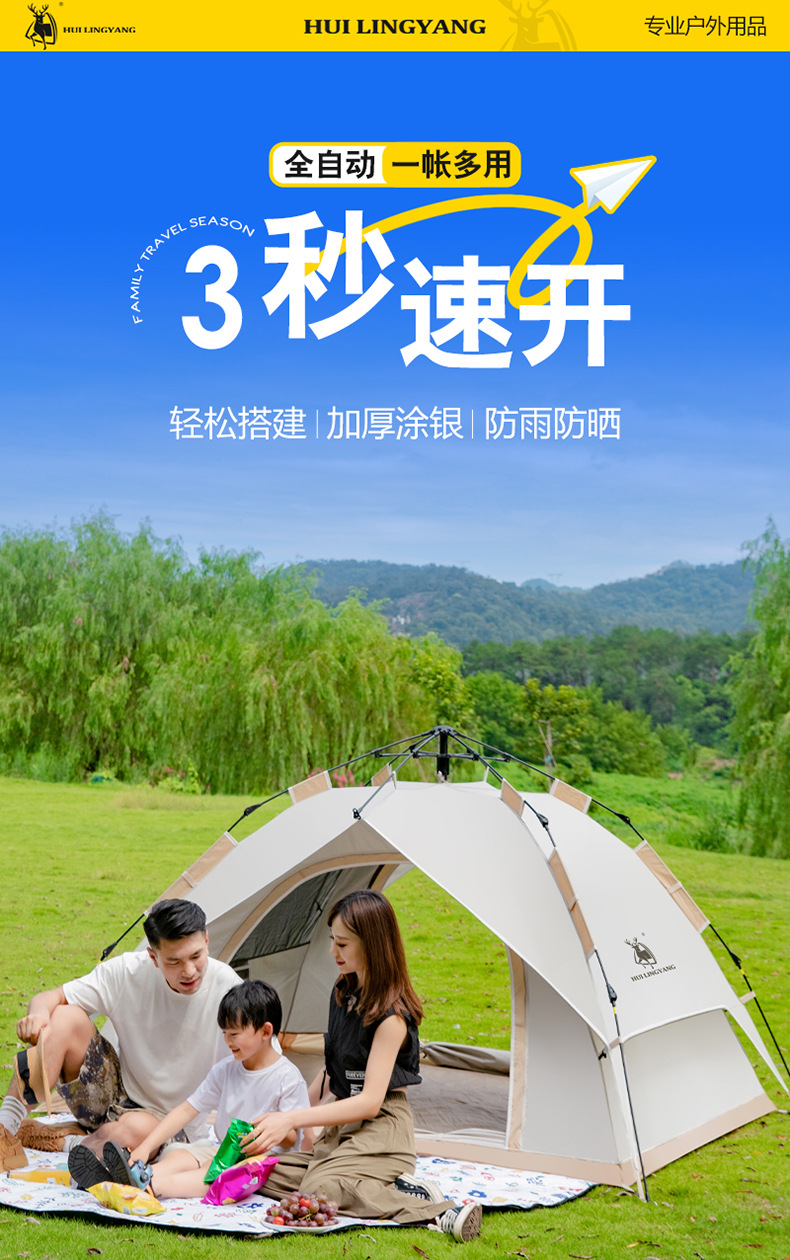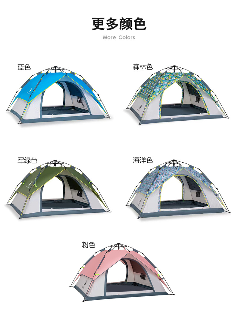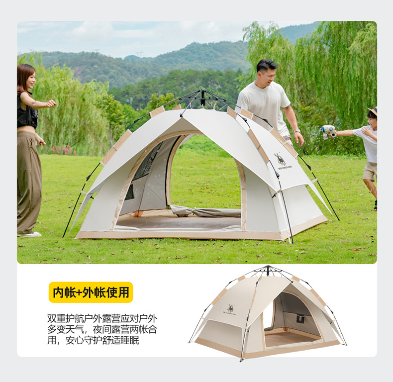 3-4인 사계절 이중층 완전 자동 텐트, 방수 및 긁힘 방지, 건설 없음, 빠른 개방 텐트, 야외 캠핑 텐트