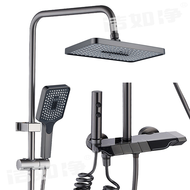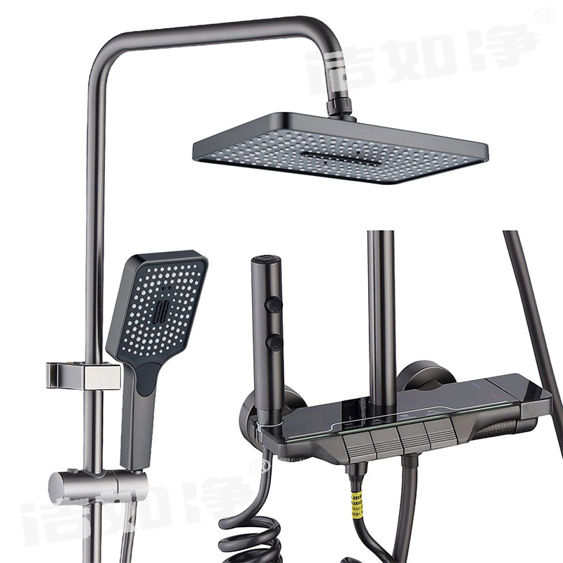 풀 구리 샤워 세트 고급 샤워 세트 홈 호텔 홈스테이 에어 부스터 노즐 디지털 디스플레이 샤워 세트