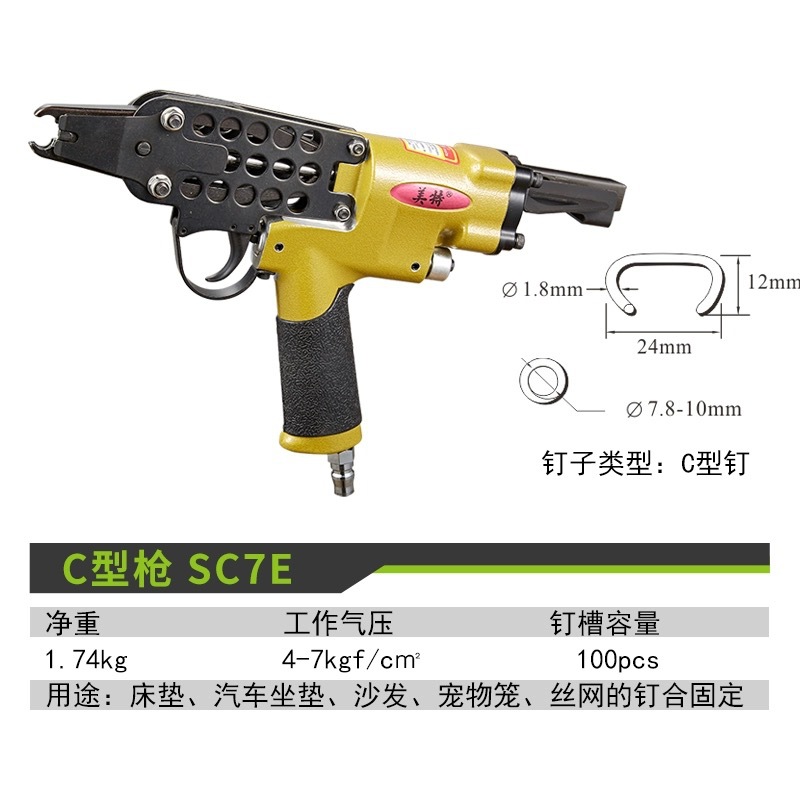 Meite C 형 네일 건 SC7E 특수 새 애완 동물 케이지 바인딩 Rockery 정원 자동차 좌석 쿠션 에어 네일 건 C 형 총