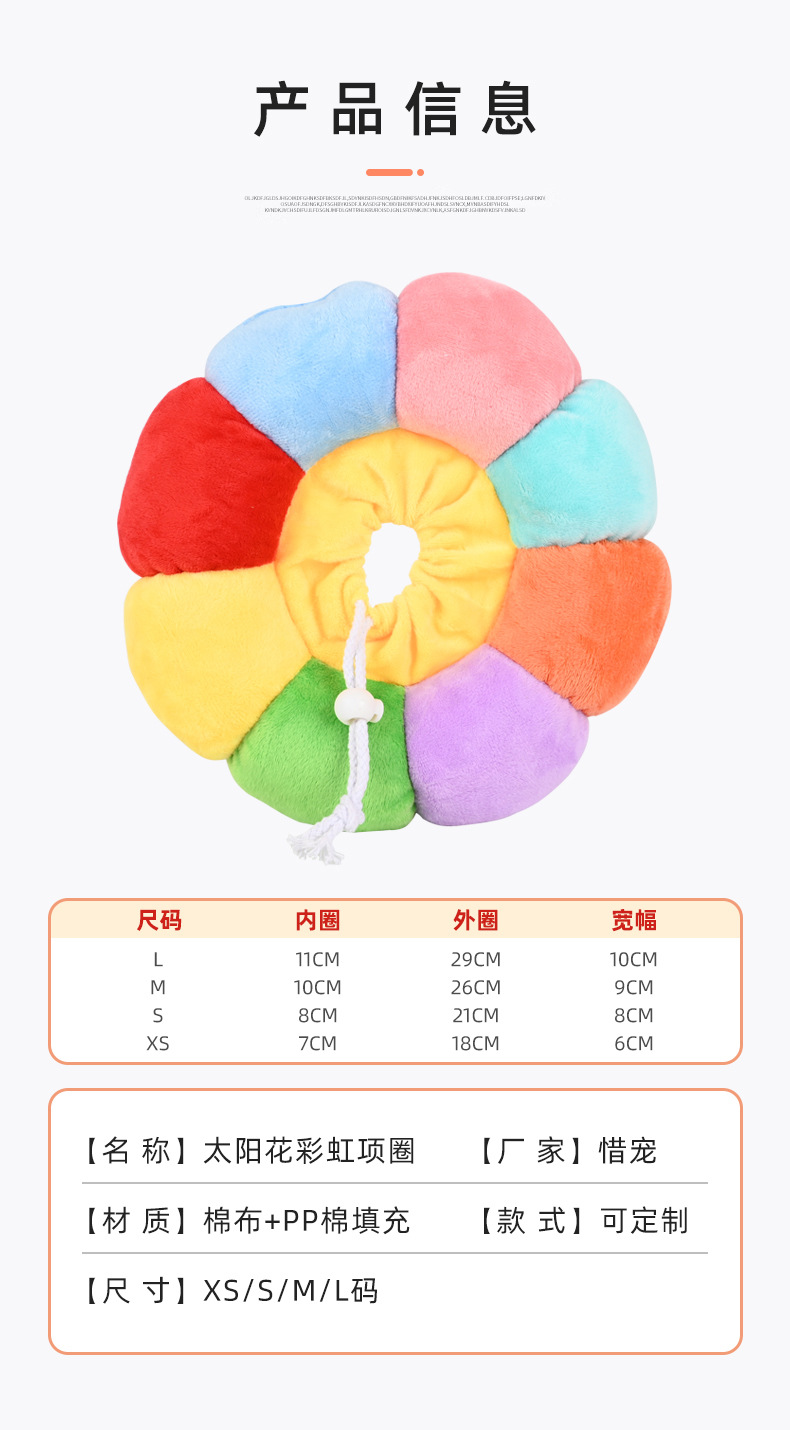 해바라기 무지개 목걸이 멀티 컬러 봉제 애완 동물 목걸이 고양이 살균 개 목걸이 애완 동물 용품 도매