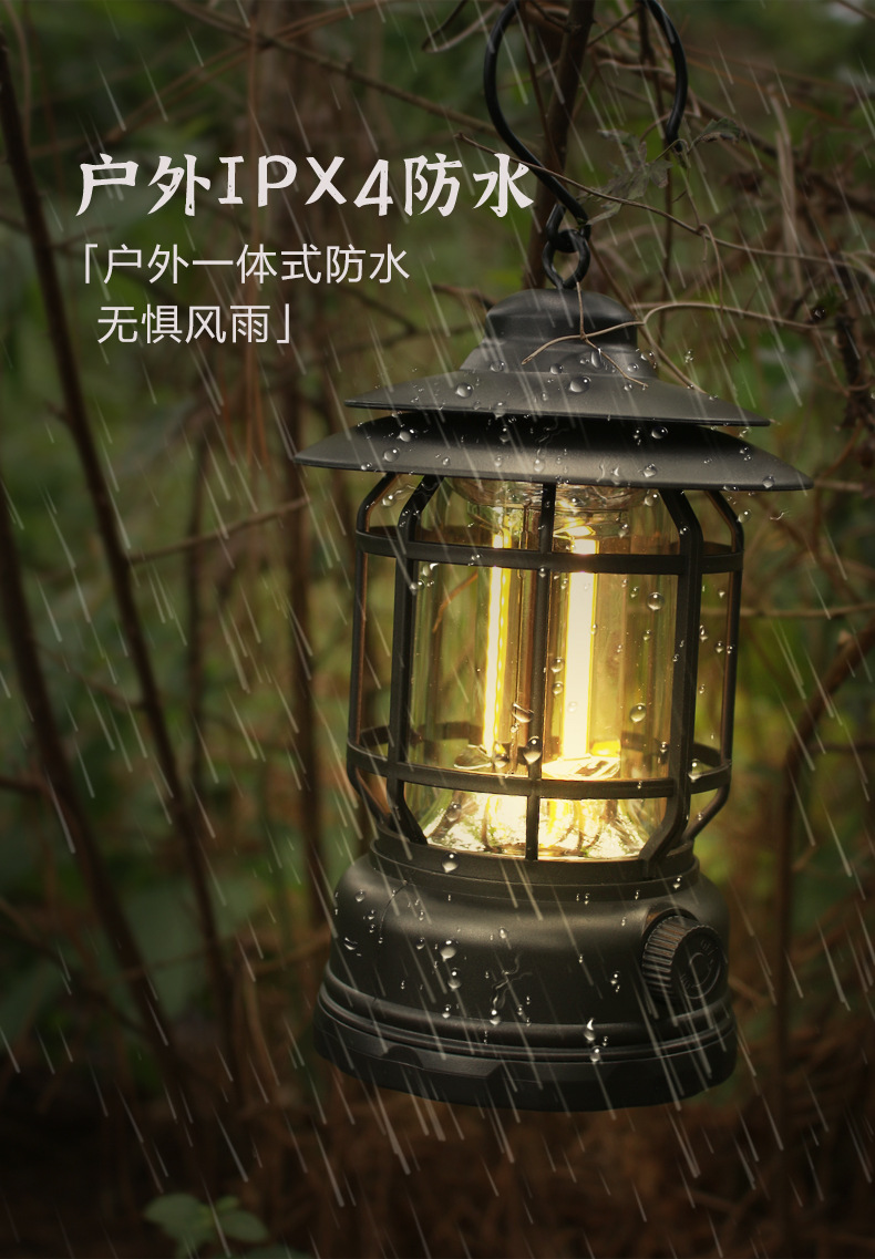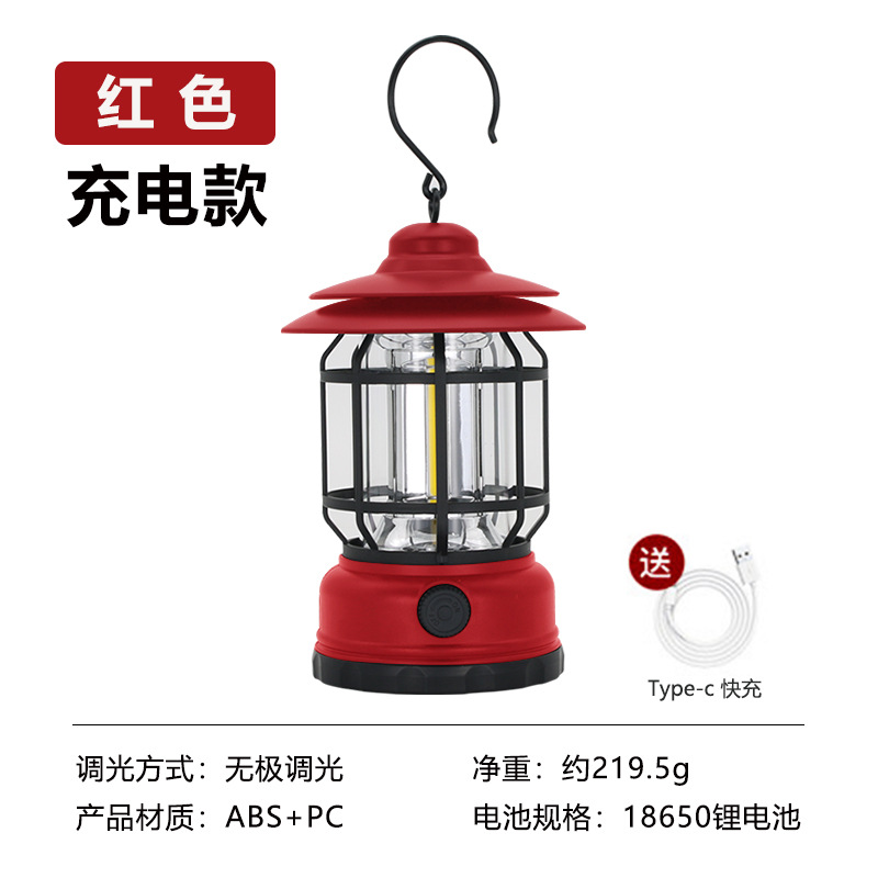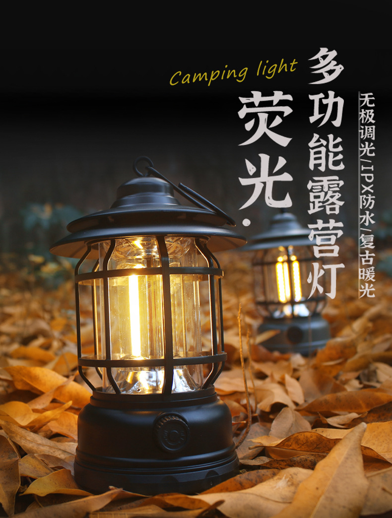 야외 장비 캠핑 랜턴, 매우 긴 배터리 수명, 조절 가능한 LED 충전식 캠프 다기능 레트로 랜턴