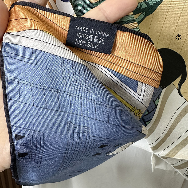 24 봄 새로운 패션 인쇄 실크 90cm 양면 하이 엔드 스퀘어 스카프 100% 뽕나무 실크 스카프 도매스토어 가기