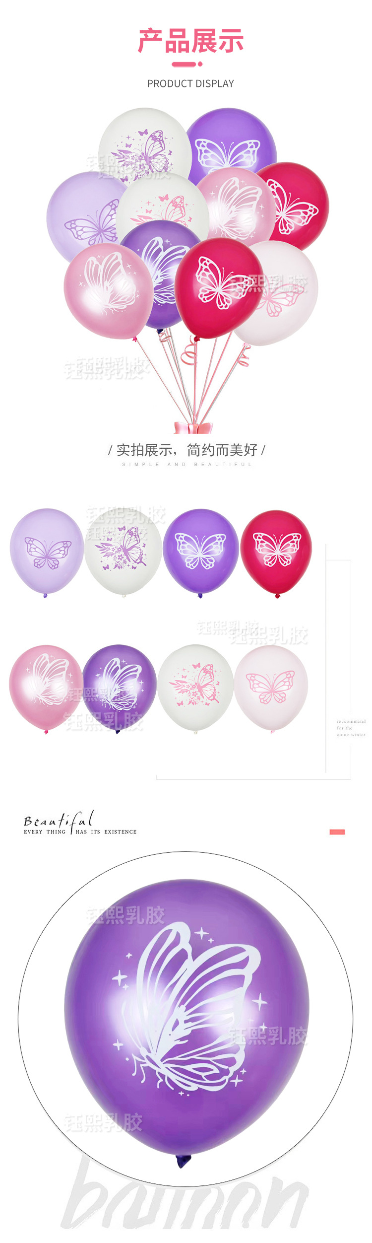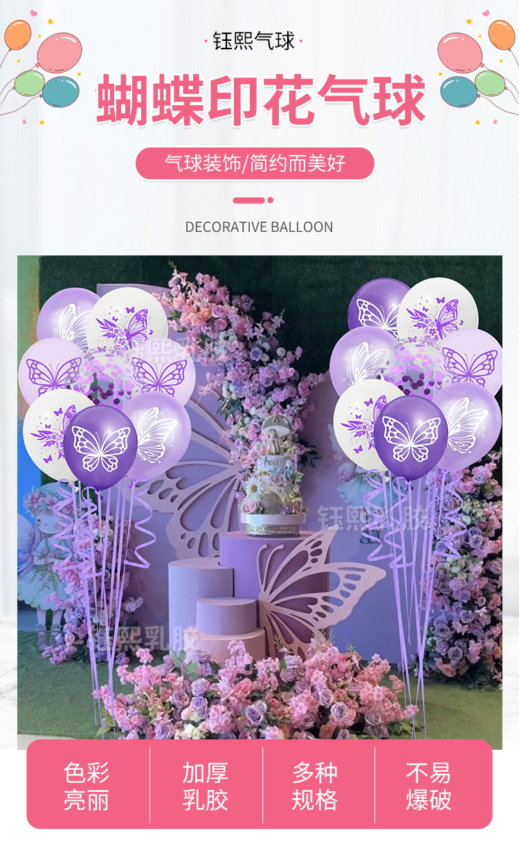 핑크색 보라색 나비 테마 풍선 나비 프린트 풍선 웨딩 장식 파티 풍선 야시장 판매 풍선스토어 가기