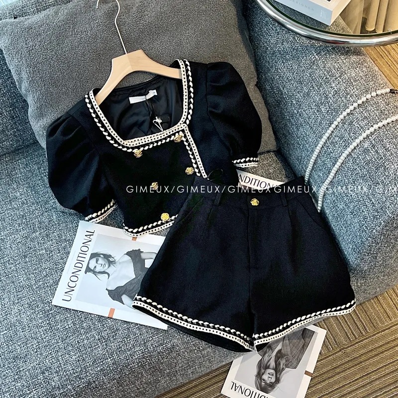 2024 여름 신상 여아용 샤오샹 스타일 세트, 독특한 디자인, 휴가룩, 패셔너블하고 달콤한 투피스 팬츠 세트스토어 가기