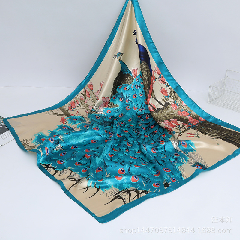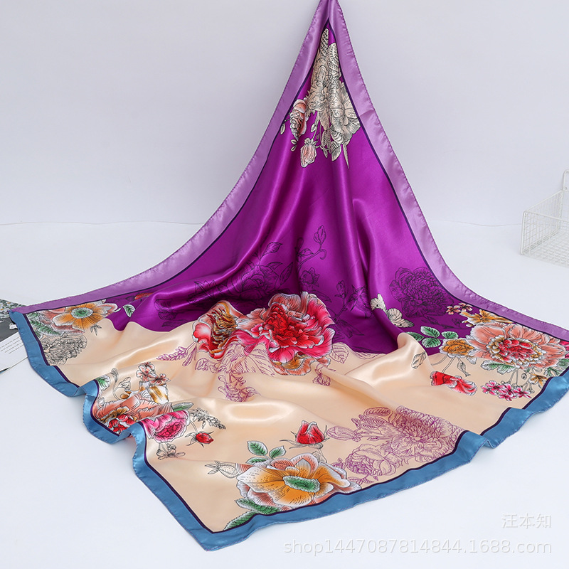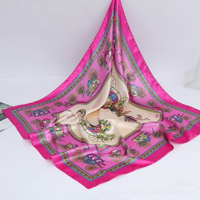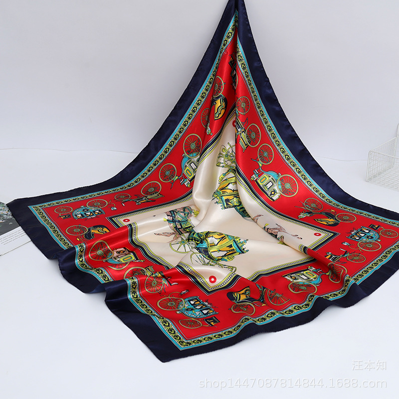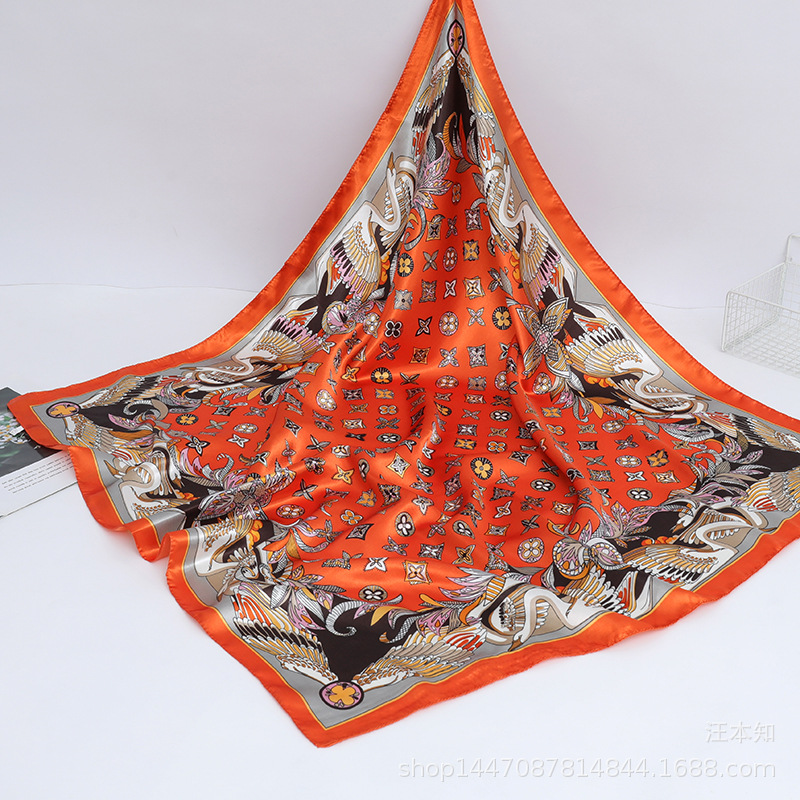 90 큰 사각형 스카프 실크 스카프 복고풍 3 차원 문자 인쇄 실크 스카프 여성의 새로운 전문 스카프 새틴 스카프 도매
