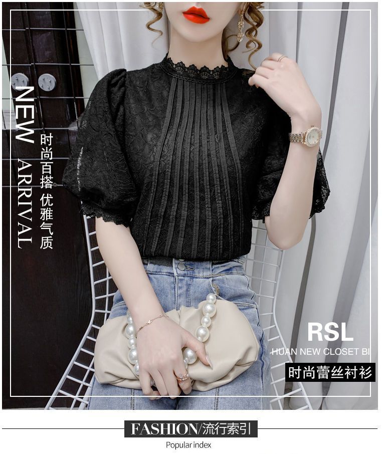 화이트 여성 상의 2025 여름 신상 퍼프 반팔 쉬폰 셔츠 얇은 티셔츠 시크한 레이스 블라우스 여성용스토어 가기