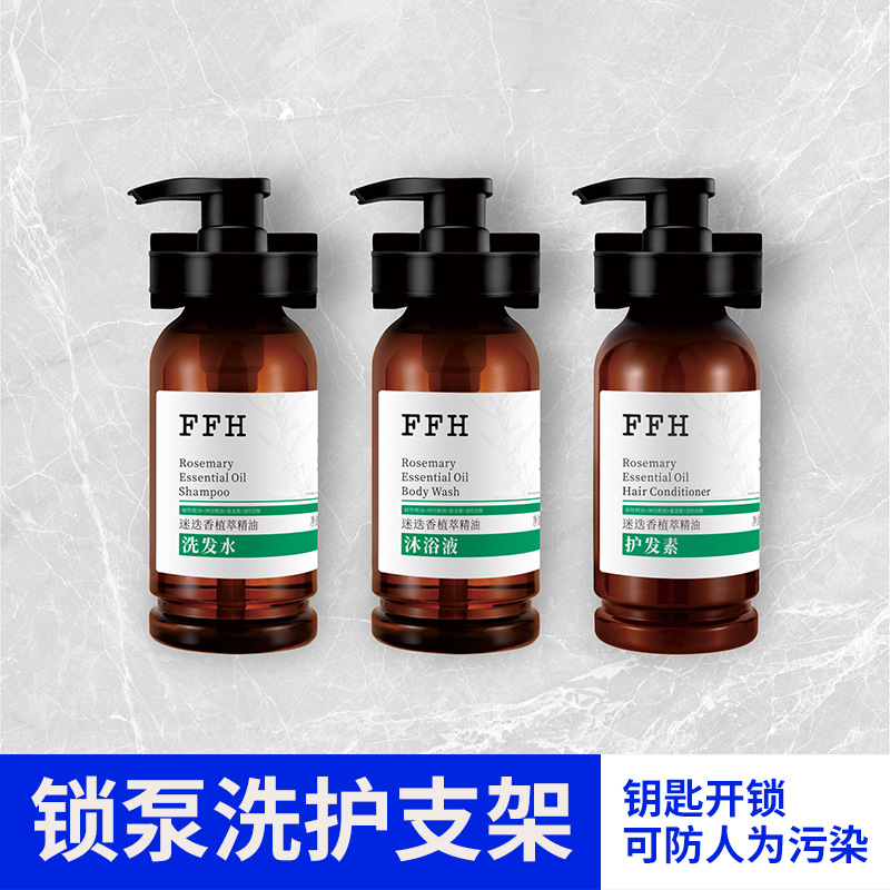 FFH 스타 호텔 샴푸 샤워 젤 브래킷 매달려 벽 잠금 펌프 잠금 병 도난 방지 공해 랙스토어 가기