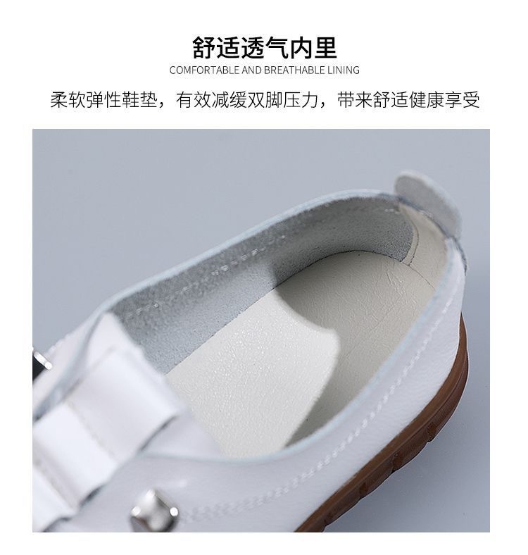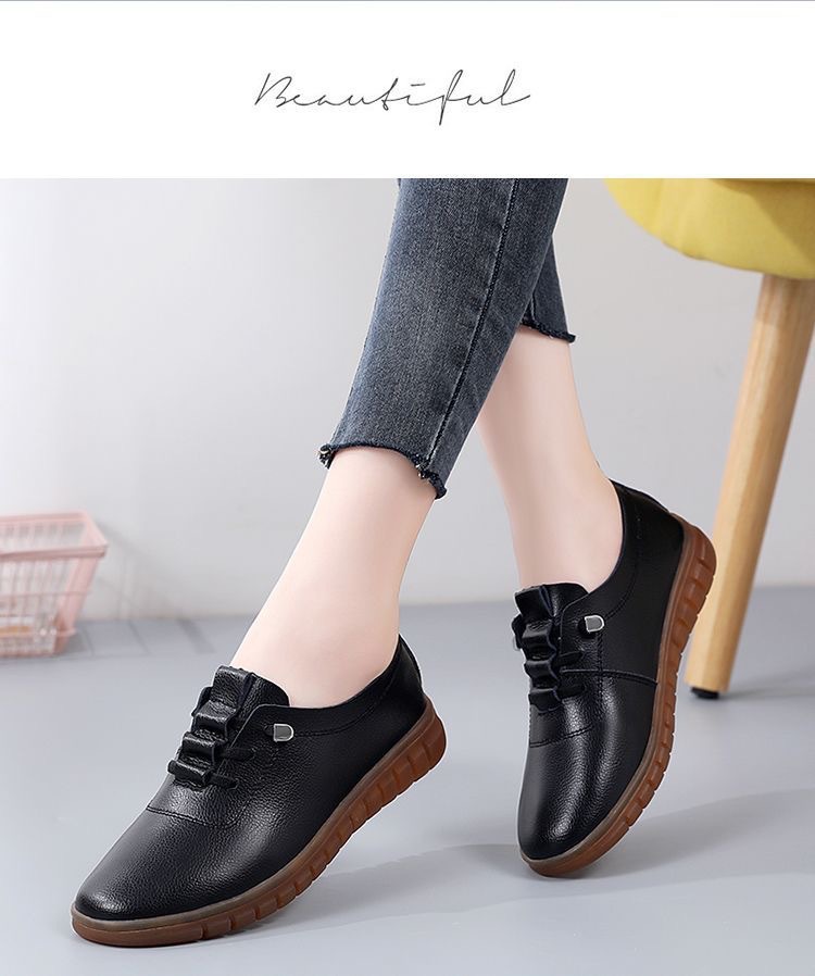 2024 봄과 여름 새로운 부드러운 가죽 쇠고기 힘줄 부드러운 바닥 새로운 평면 신발 싱글 레이어 신발 캐주얼 신발 가죽 신발 어머니 신발 게으른스토어 가기