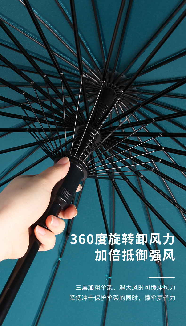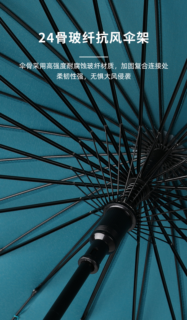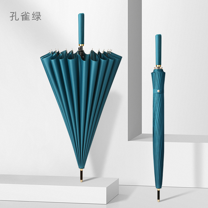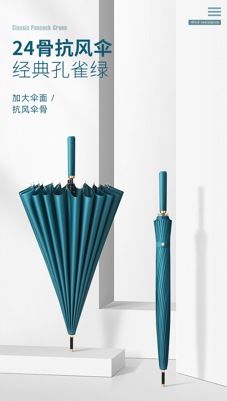 • 24-뼈 확대 자동 곡선 핸들 비즈니스 우산-Peacock Green (섬유 거친 우산 뼈)