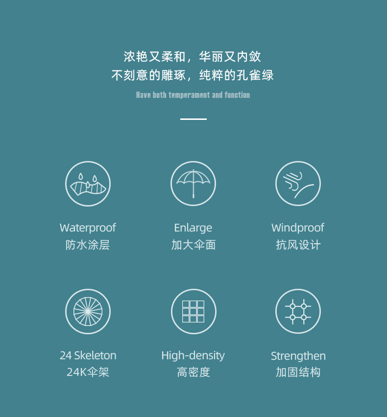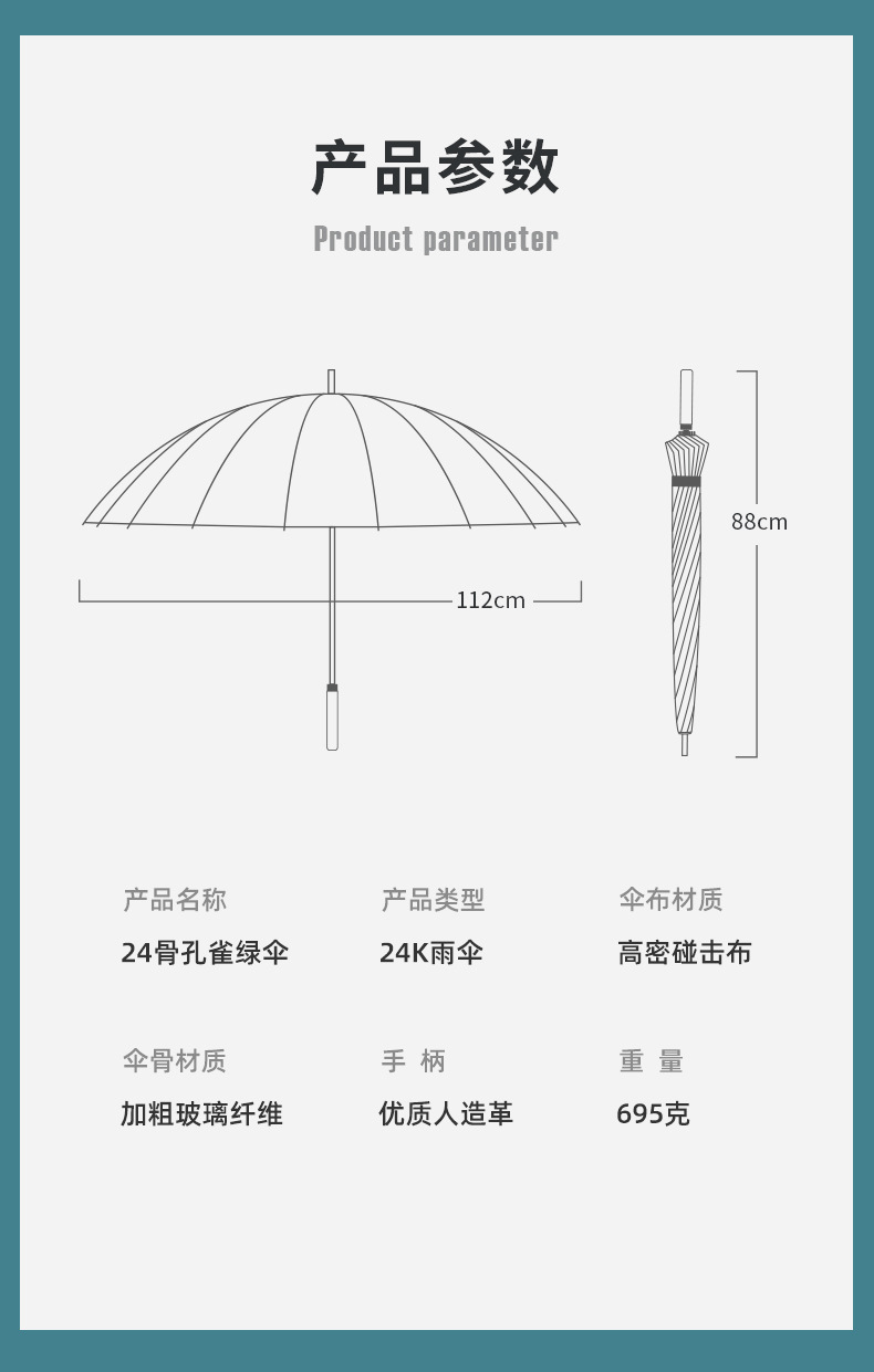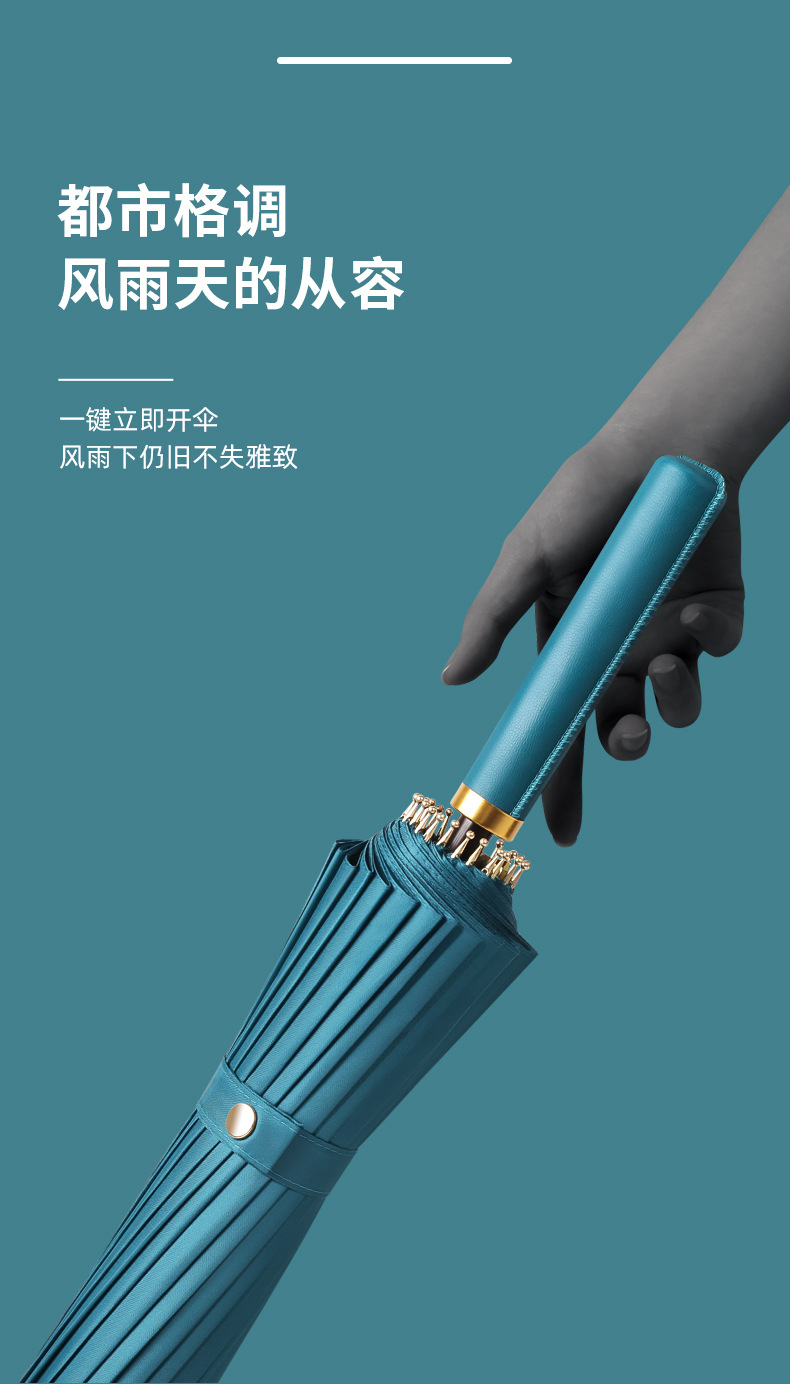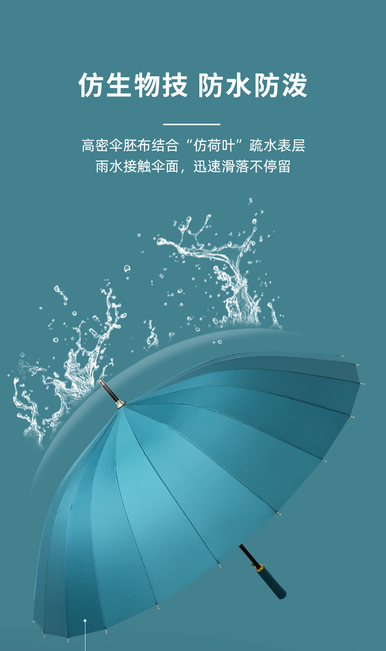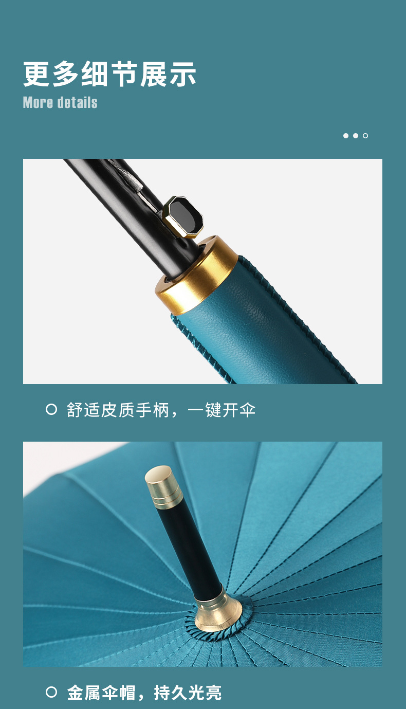 • 24-뼈 확대 자동 곡선 핸들 비즈니스 우산-Peacock Green (섬유 거친 우산 뼈)