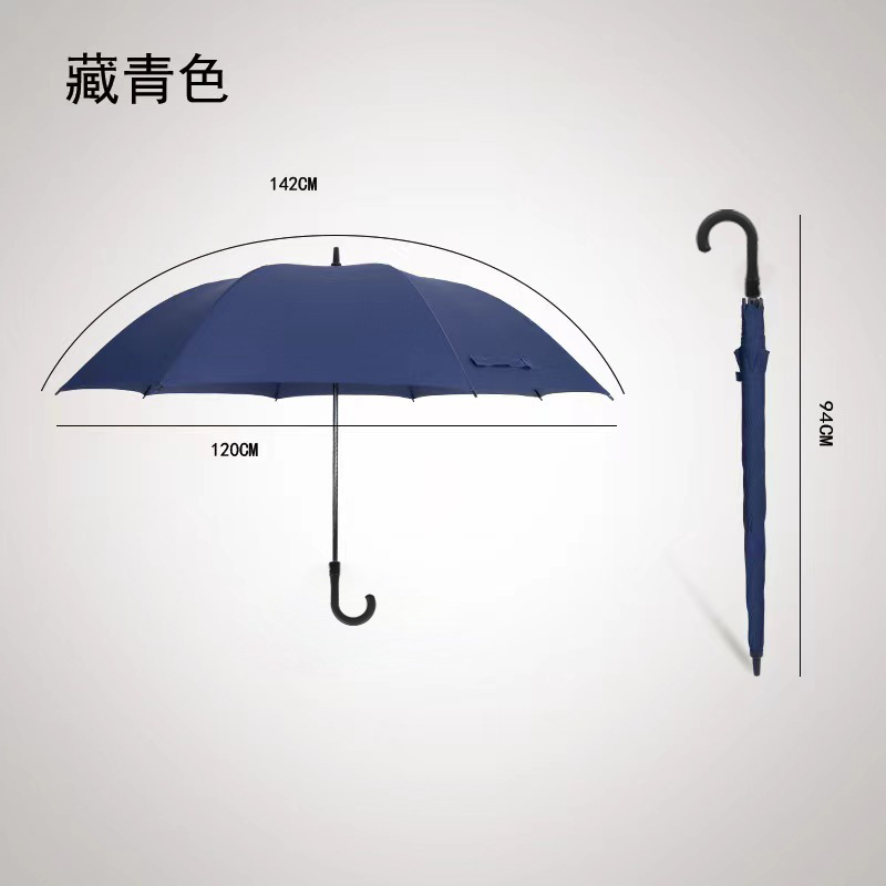 • 24-뼈 초대형 자동 곡선 핸들 비즈니스 우산 네이비 (섬유 거친 우산 뼈)