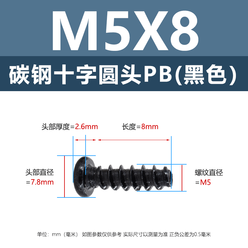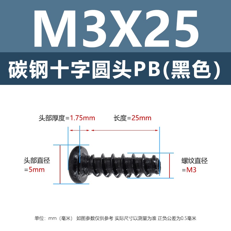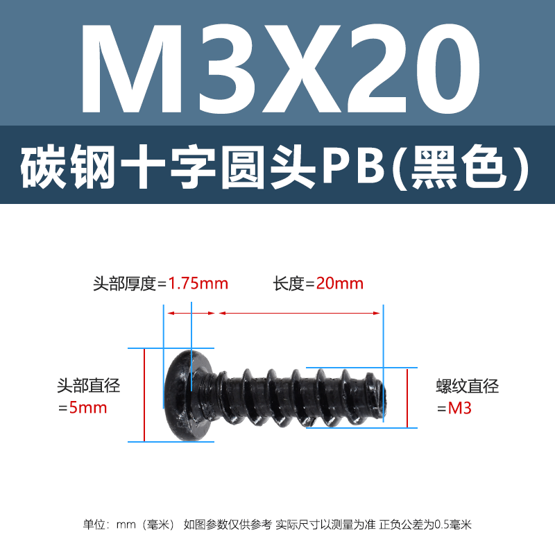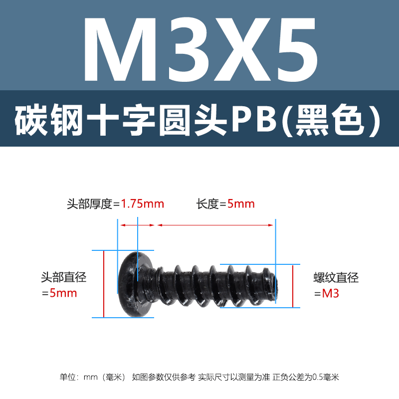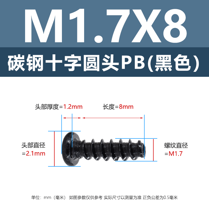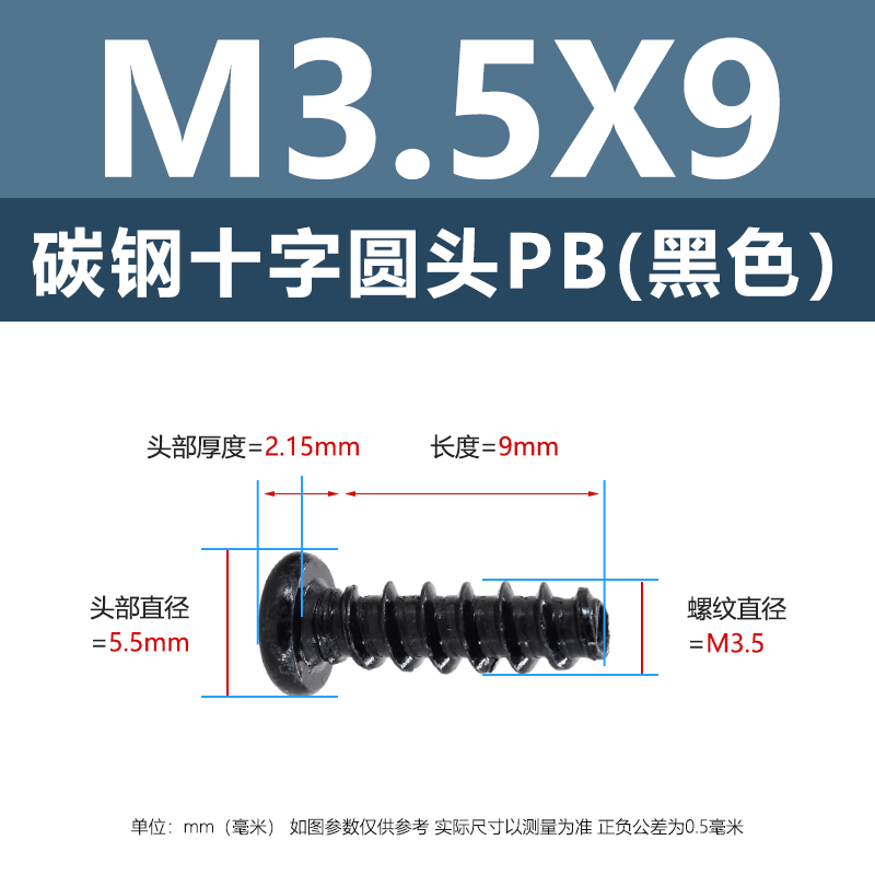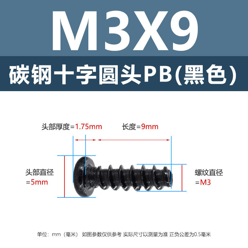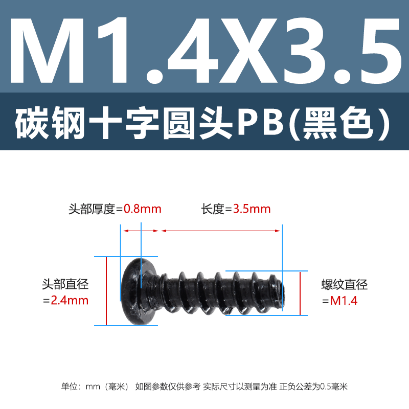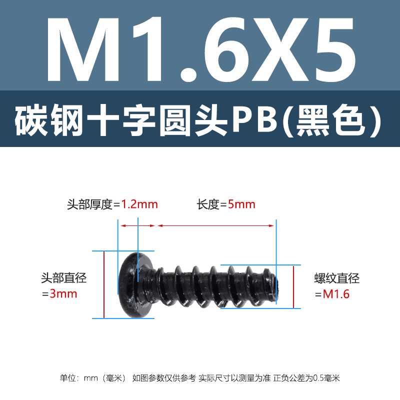 PB 철 탄소 강철 블랙 라운드 헤드 크로스 플랫 헤드 플랫 테일 셀프 태핑 스크류 팬 헤드 작은 나사 M1M1.2M2M3M4mm