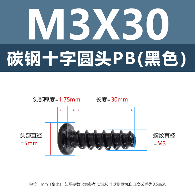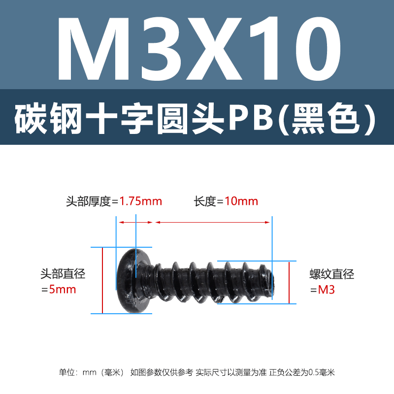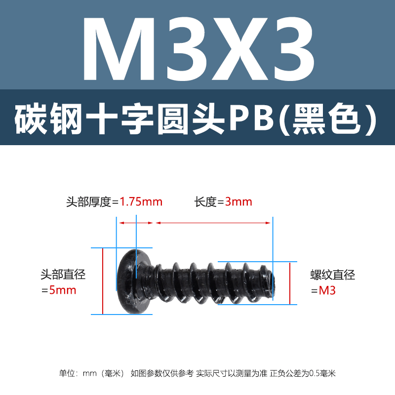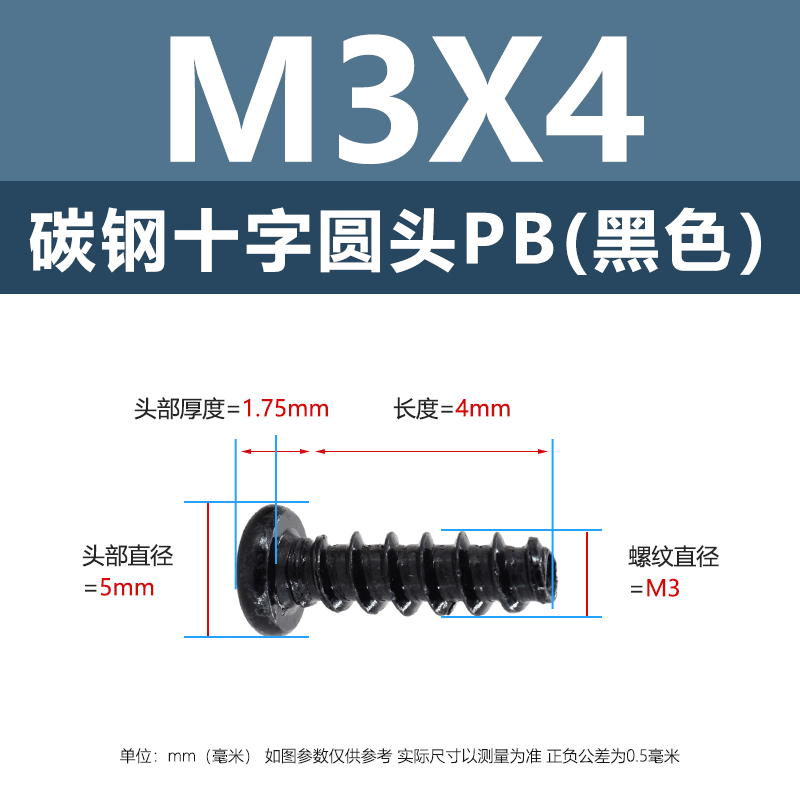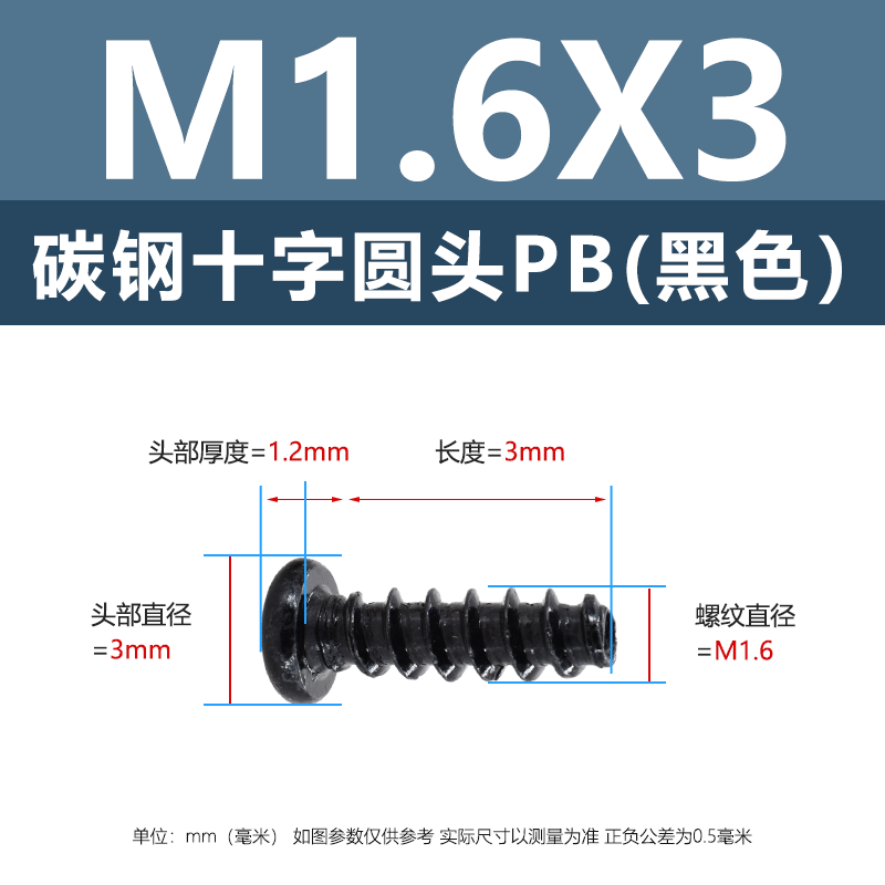 PB 철 탄소 강철 블랙 라운드 헤드 크로스 플랫 헤드 플랫 테일 셀프 태핑 스크류 팬 헤드 작은 나사 M1M1.2M2M3M4mm스토어 가기