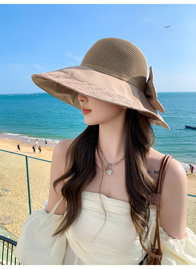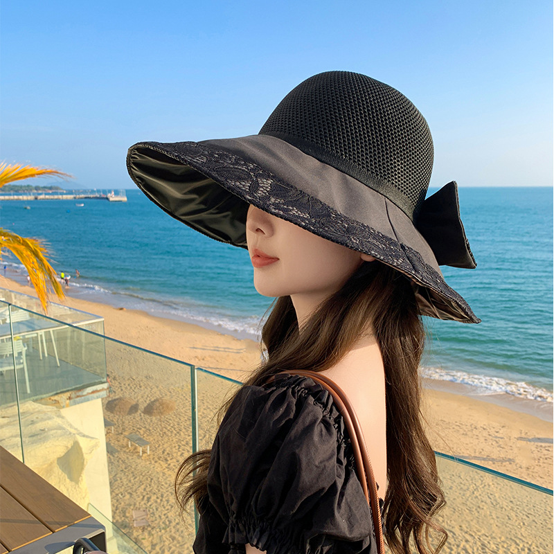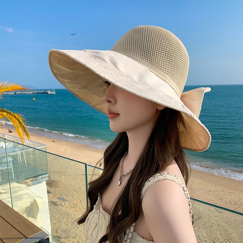 한국 스타일 봄과 여름 새로운 야외 여행 해변 레이스 메쉬 통기성 태양 모자 여성의 태양 모자