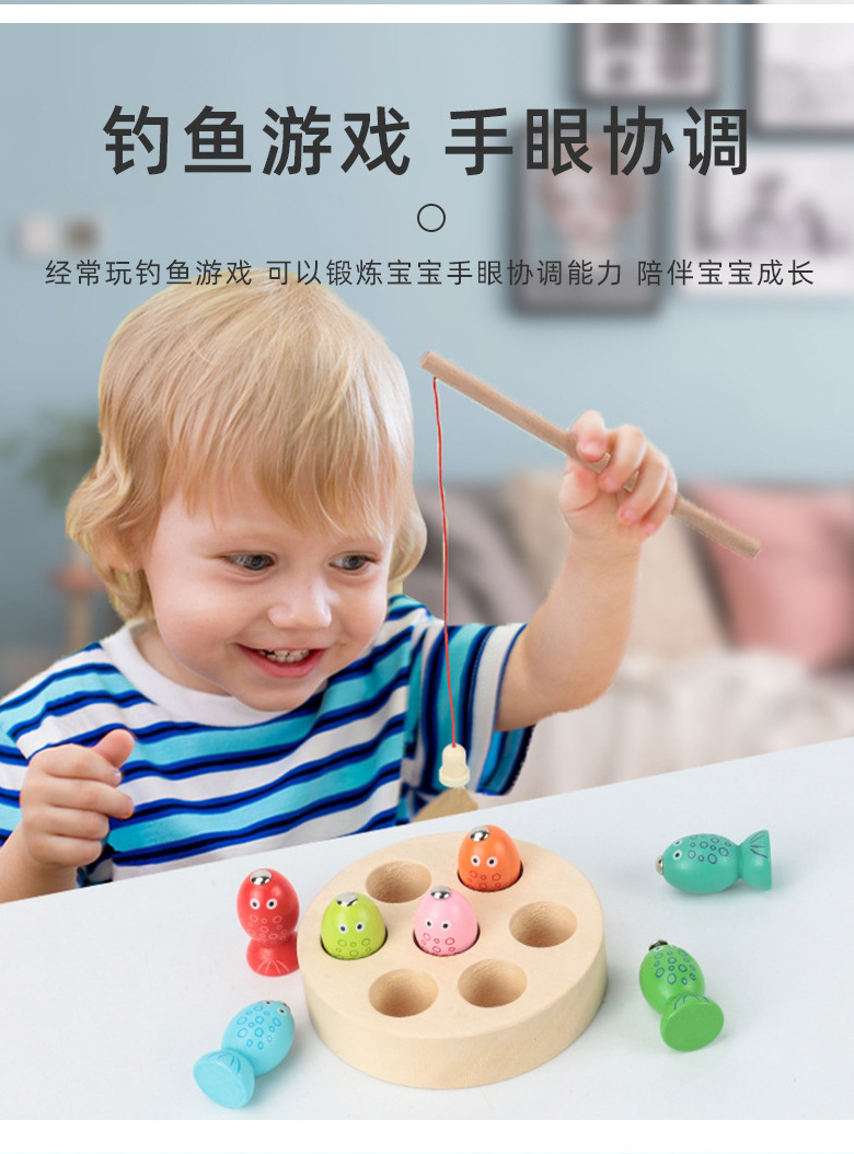 어린이 교육 완구 자기 스몰 사이즈 디스크 낚시 게임 집중 훈련 나무 낚시 자기 장난감스토어 가기