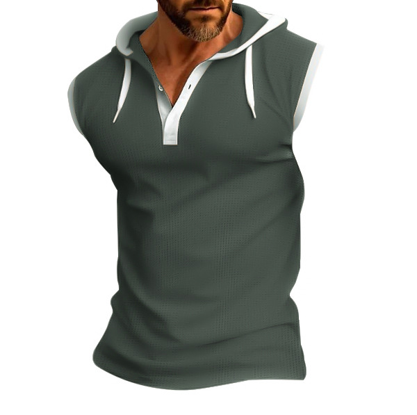 유럽과 미국의 국경 아마존 2025 여름 신작 남성 조끼 무거운 후드 양복 조끼 트렌디 브랜드 캐주얼 민소매 티셔츠스토어 가기