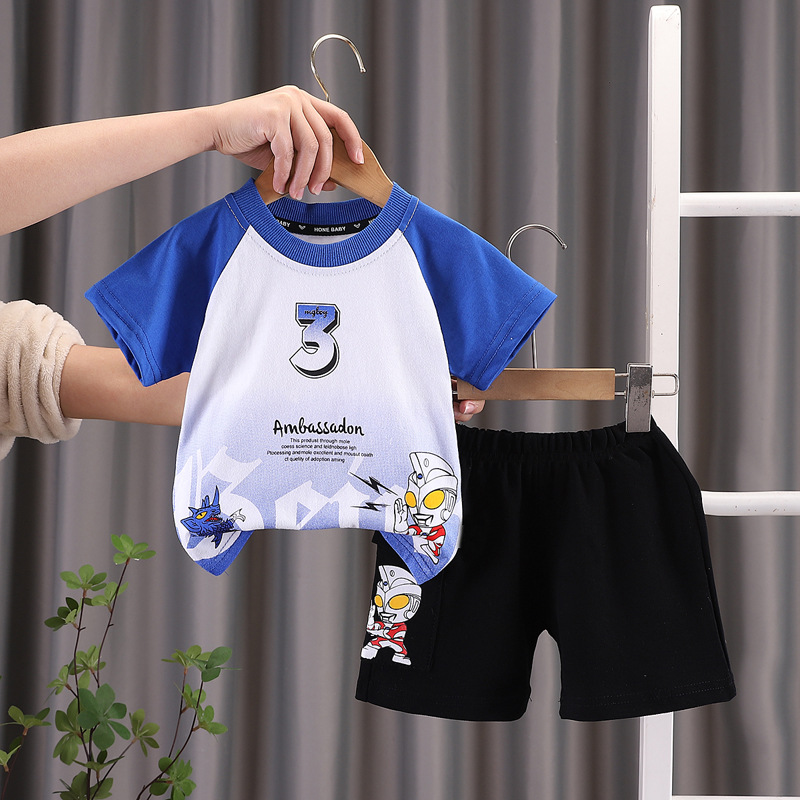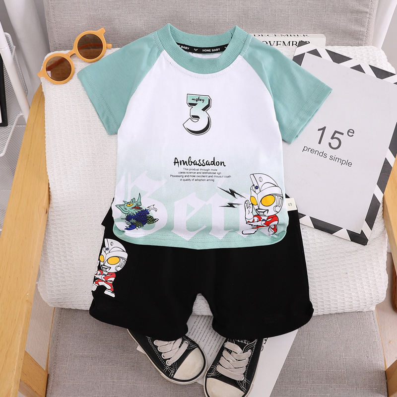 남학생 여름 반팔 티셔츠 세트 1-5 세 아기 옷 소녀 만화 여름 옷 잘 생긴 얇은 원피스 배달스토어 가기