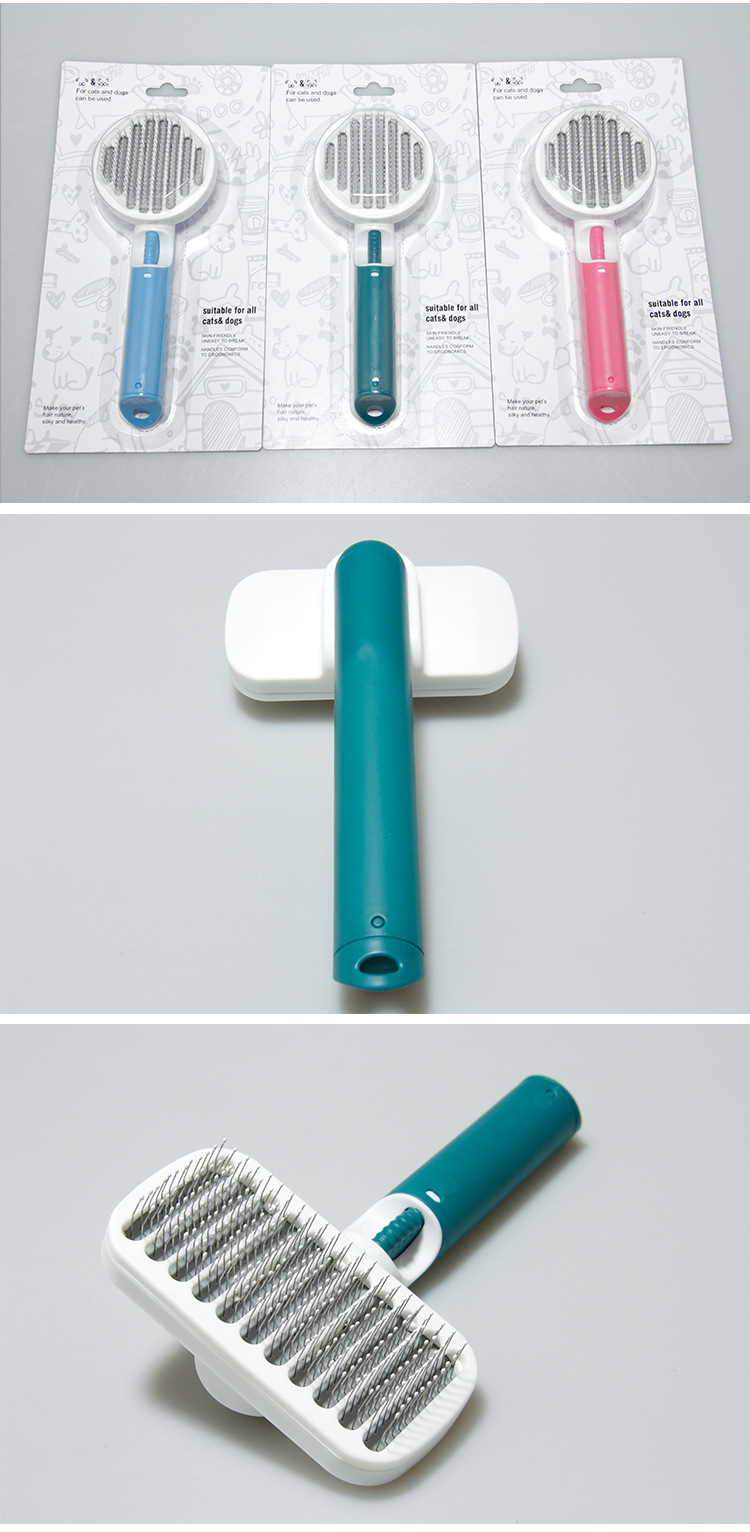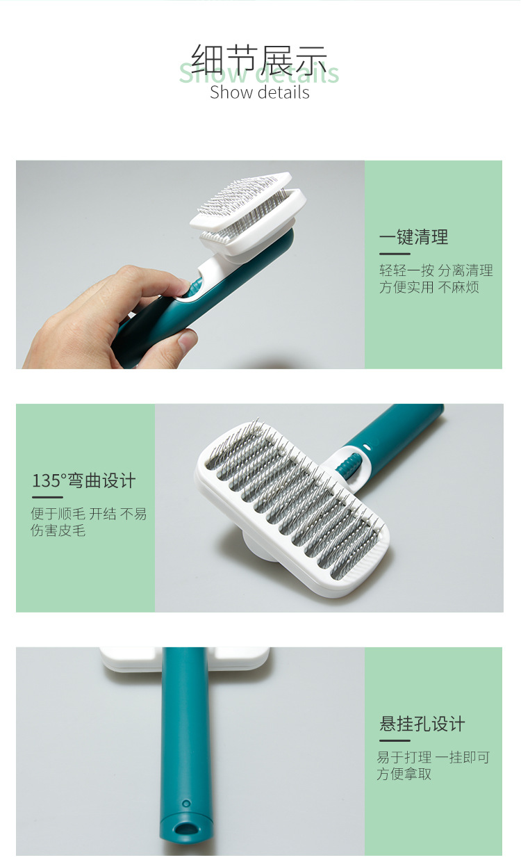 새로운 애완 동물 정밀 금형 빗 스테인리스 바늘 빗 머리 제거 떠있는 머리 고양이 개 원 클릭 자기 청소 기능 아름다움 빗스토어 가기