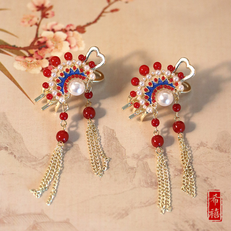 국립 패션 북경 오페라 얼굴 메이크업 술 머리핀 머리 머리 진주 골동품 머리핀 한푸 액세서리 클래식 헤어 액세서리 머리핀스토어 가기