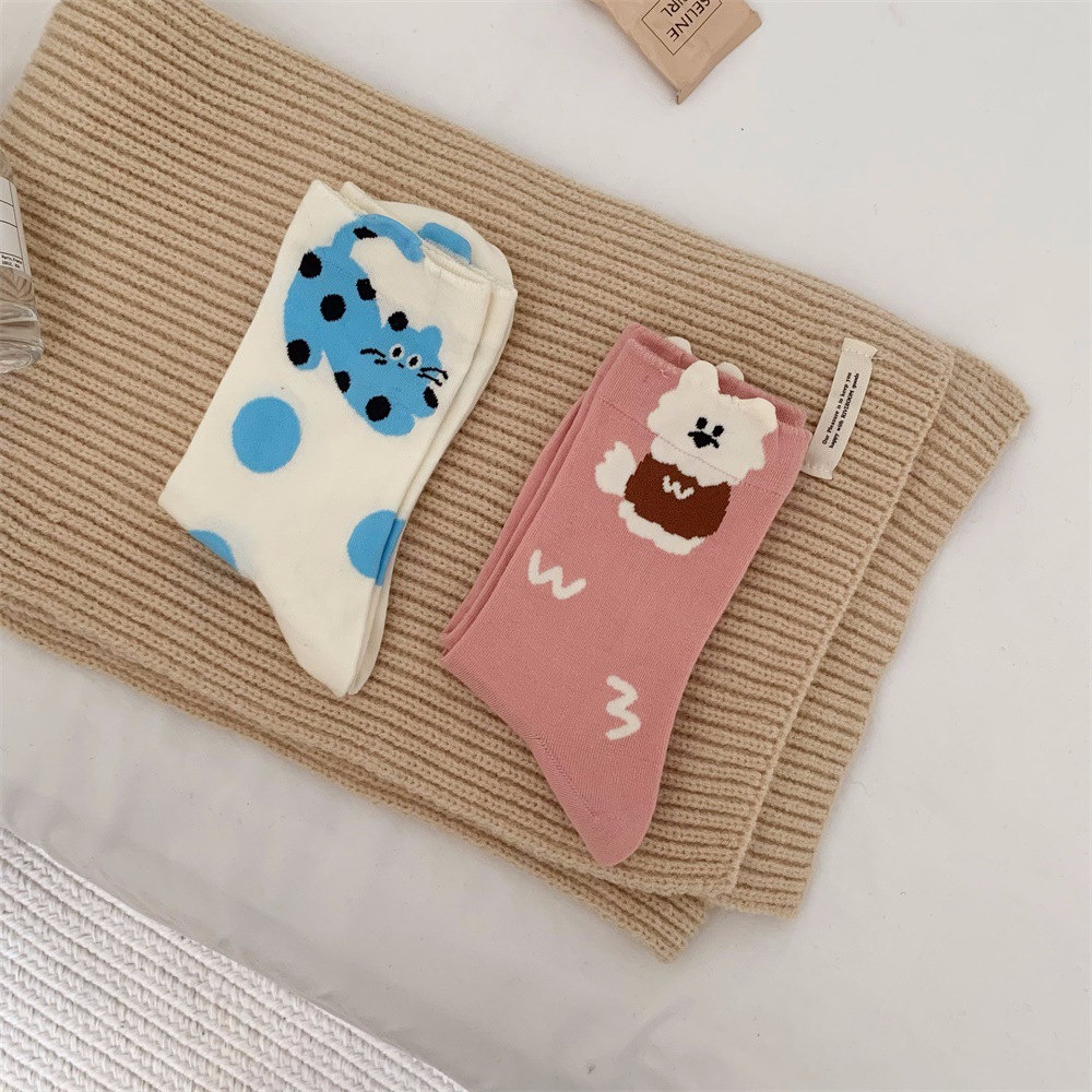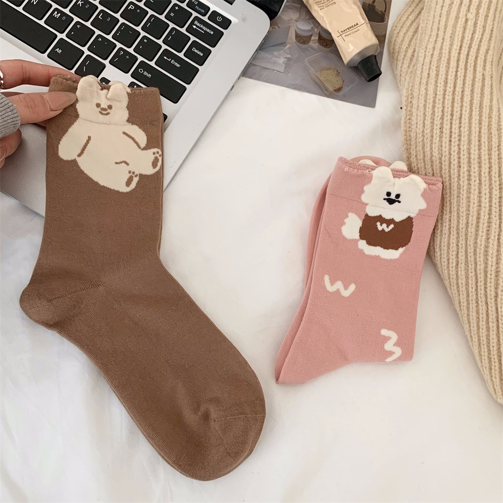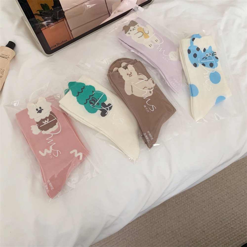 3 차원 귀여운 강아지 양말 여성의 중간 송아지 길이 양말 봄과 여름 얇은 일본 달콤한 만화 동물 학생 스타킹 면화