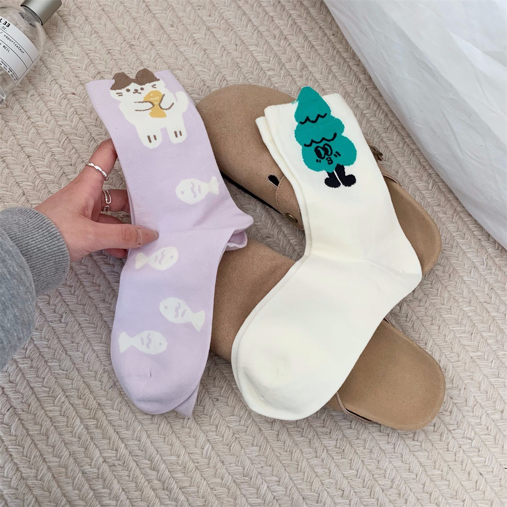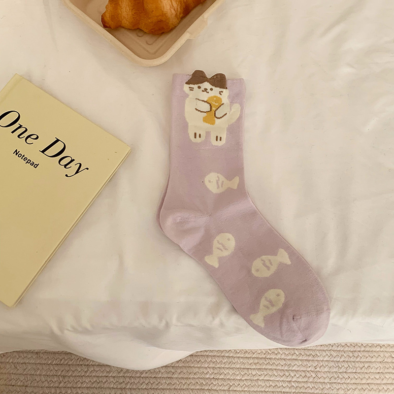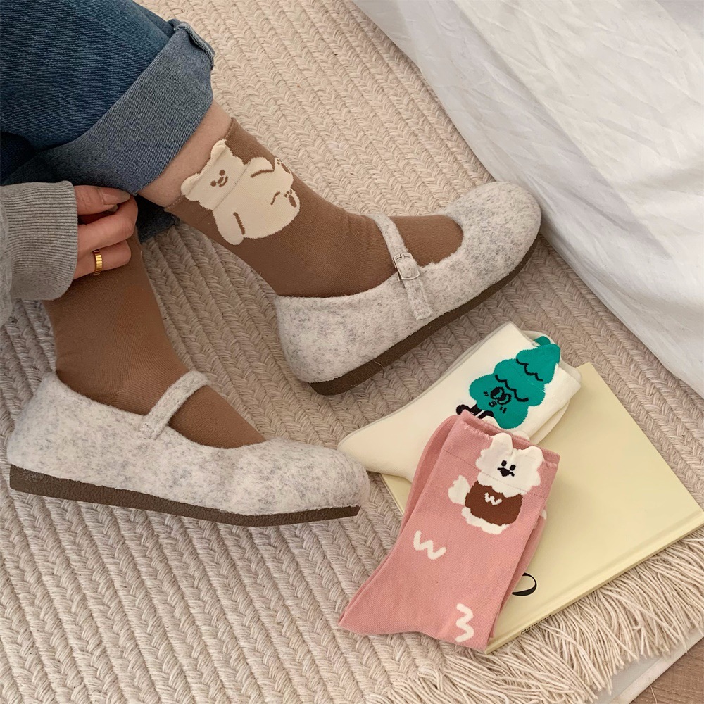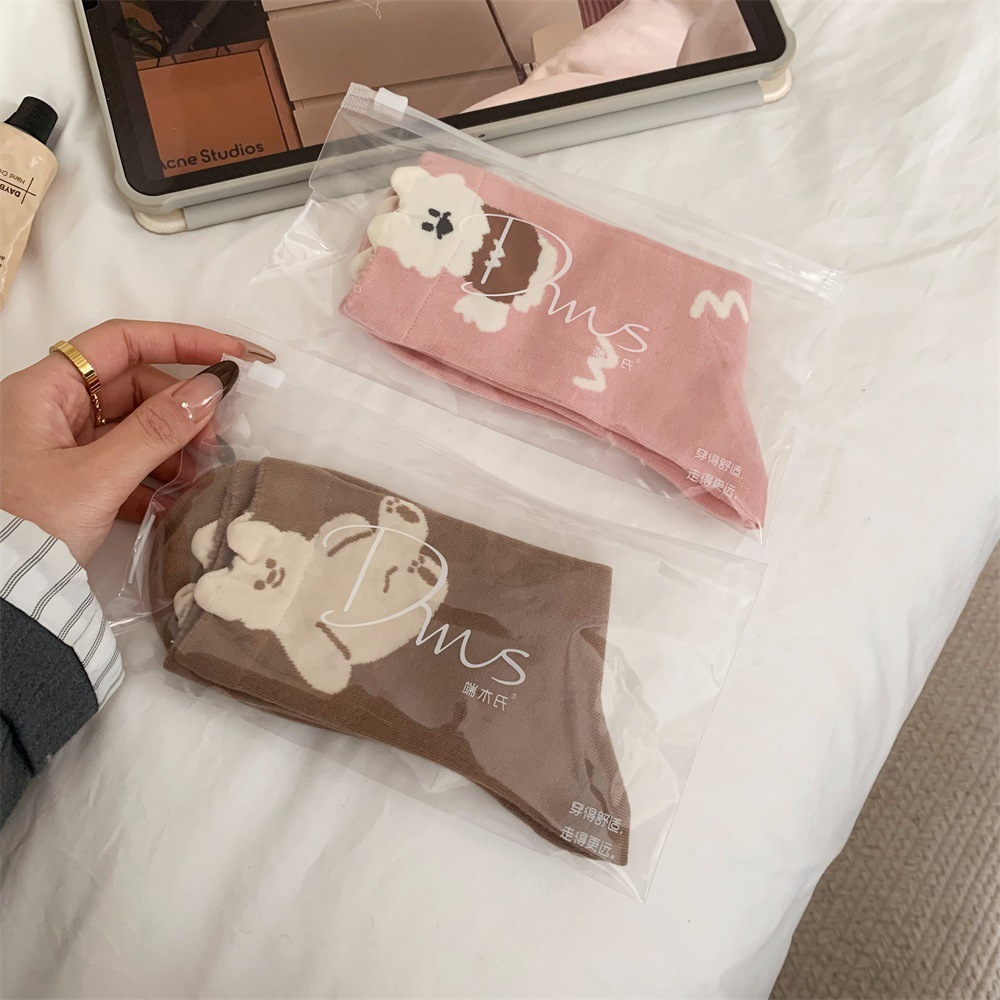 3 차원 귀여운 강아지 양말 여성의 중간 송아지 길이 양말 봄과 여름 얇은 일본 달콤한 만화 동물 학생 스타킹 면화