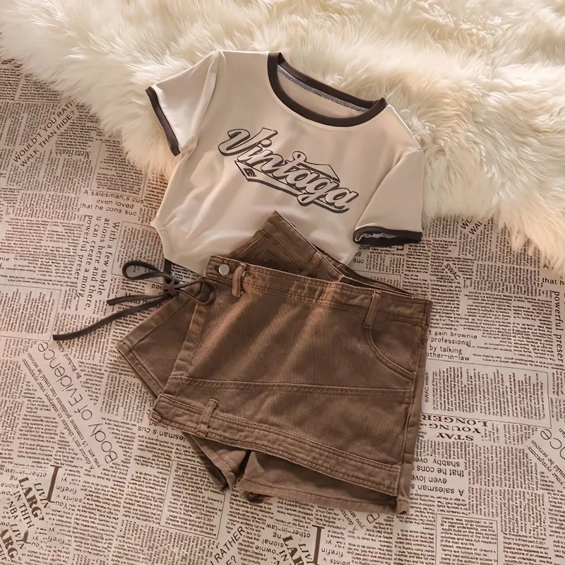2024 뉴 걸스 세트 여름 스트랩 짧은 반팔 불규칙한 반바지 2 피스 세트 세련된 유행 프라이드 스트리트스토어 가기