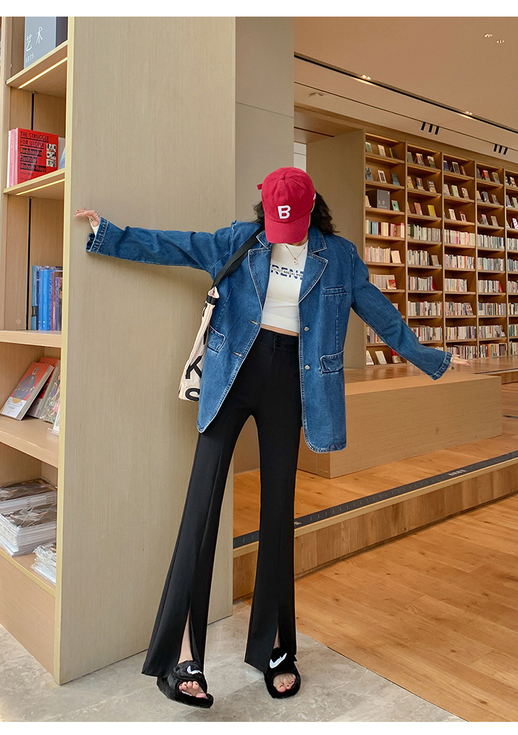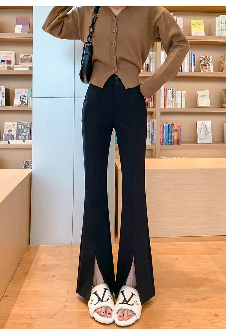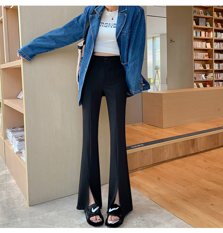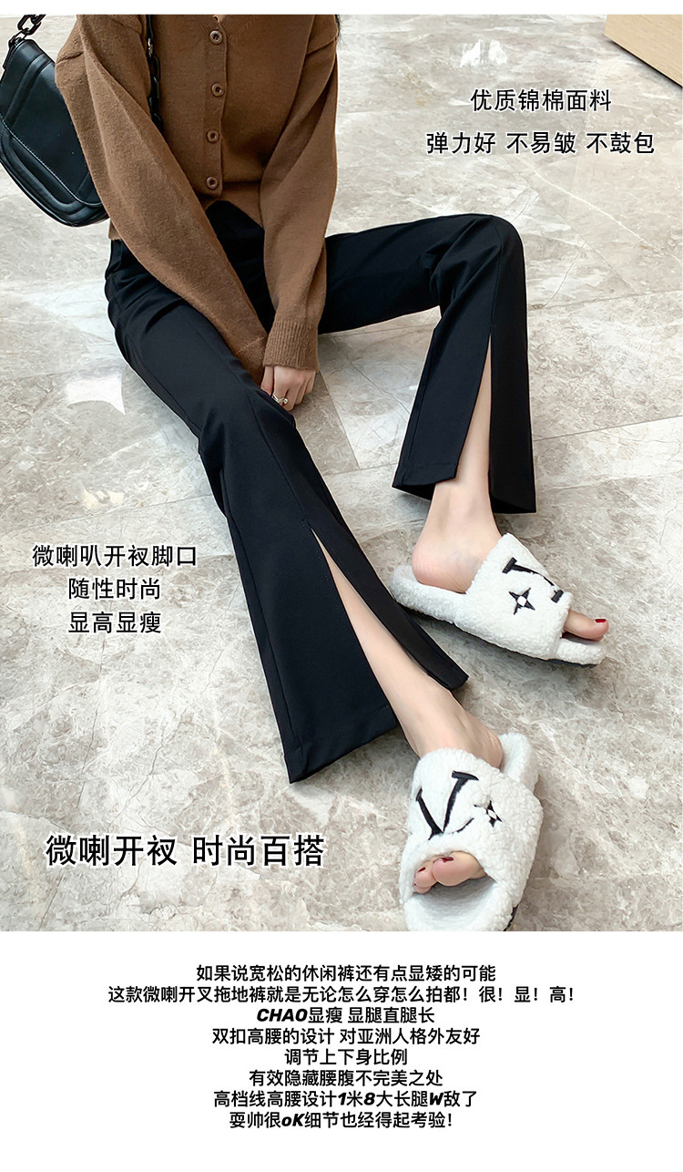 여성용 배 모양의 스플릿 와이드 레그 세트 바지 봄과 가을 높은 허리 드레이핑 통통녀 플러스 사이즈 슬리밍 마이크로 혼 걸레 바지스토어 가기