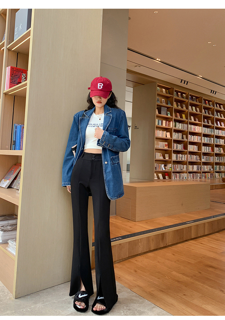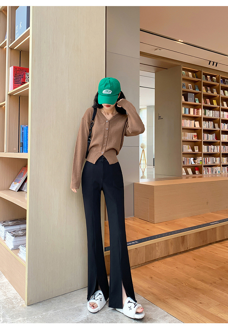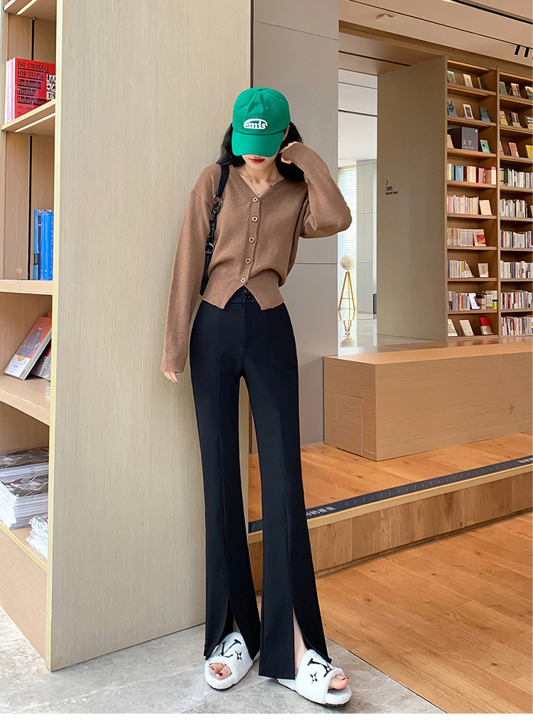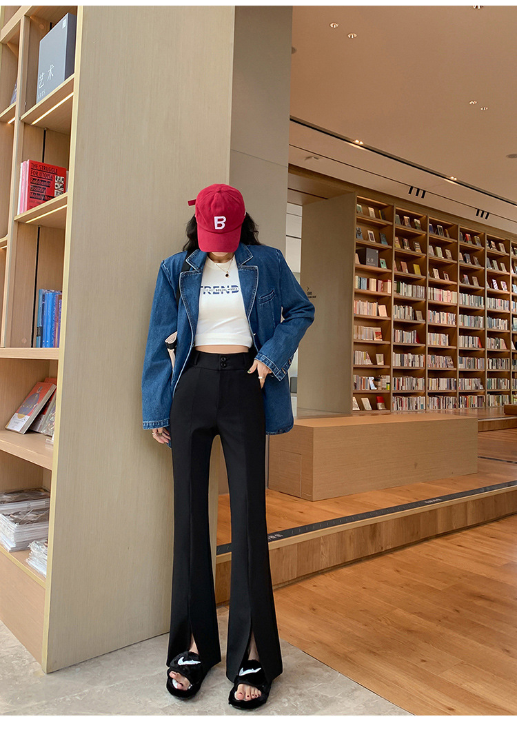 여성용 배 모양의 스플릿 와이드 레그 세트 바지 봄과 가을 높은 허리 드레이핑 통통녀 플러스 사이즈 슬리밍 마이크로 혼 걸레 바지스토어 가기