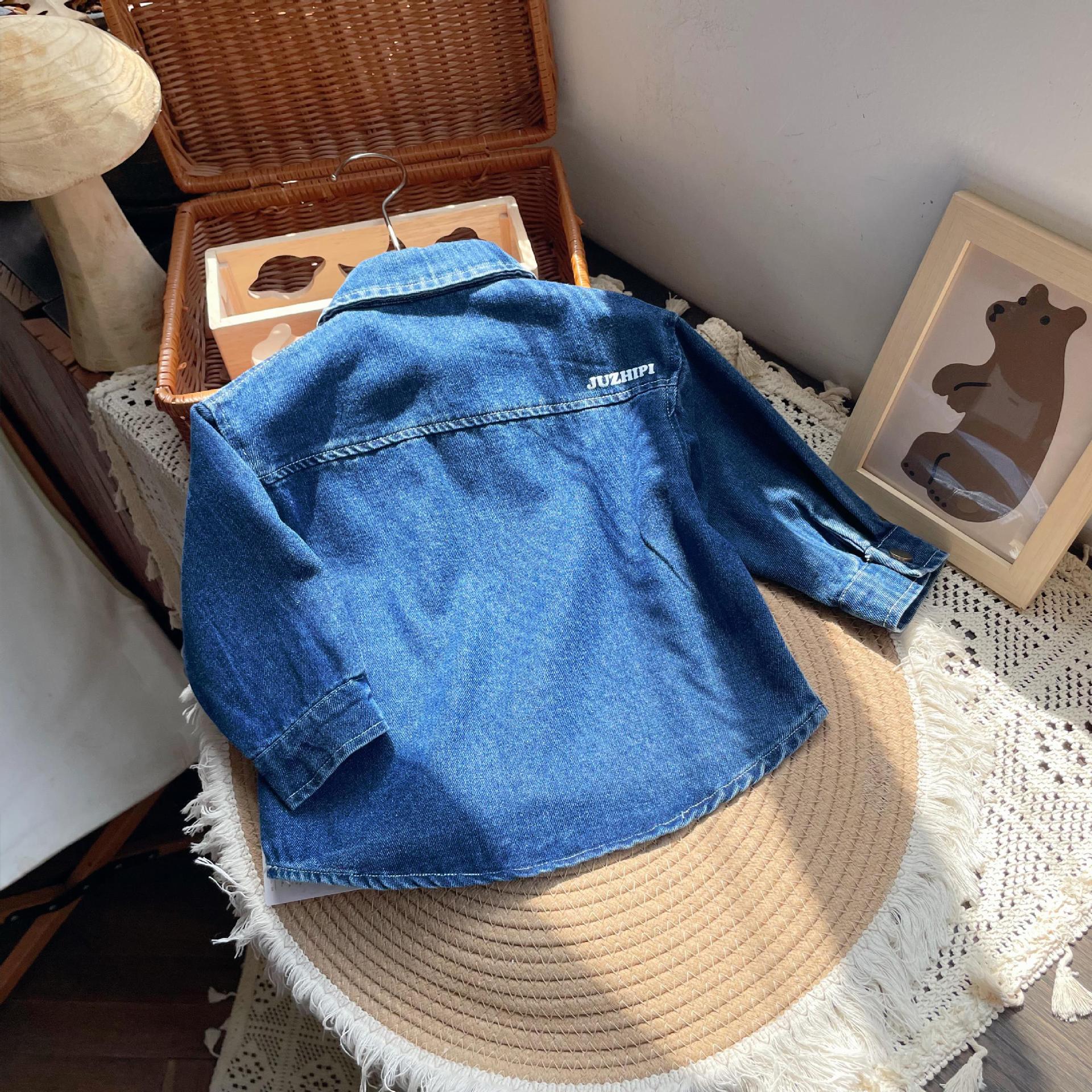 [재고] CW245007 오렌지 스톱 가죽 2024 소년과 어린이 새로운 데님 셔츠 코트스토어 가기