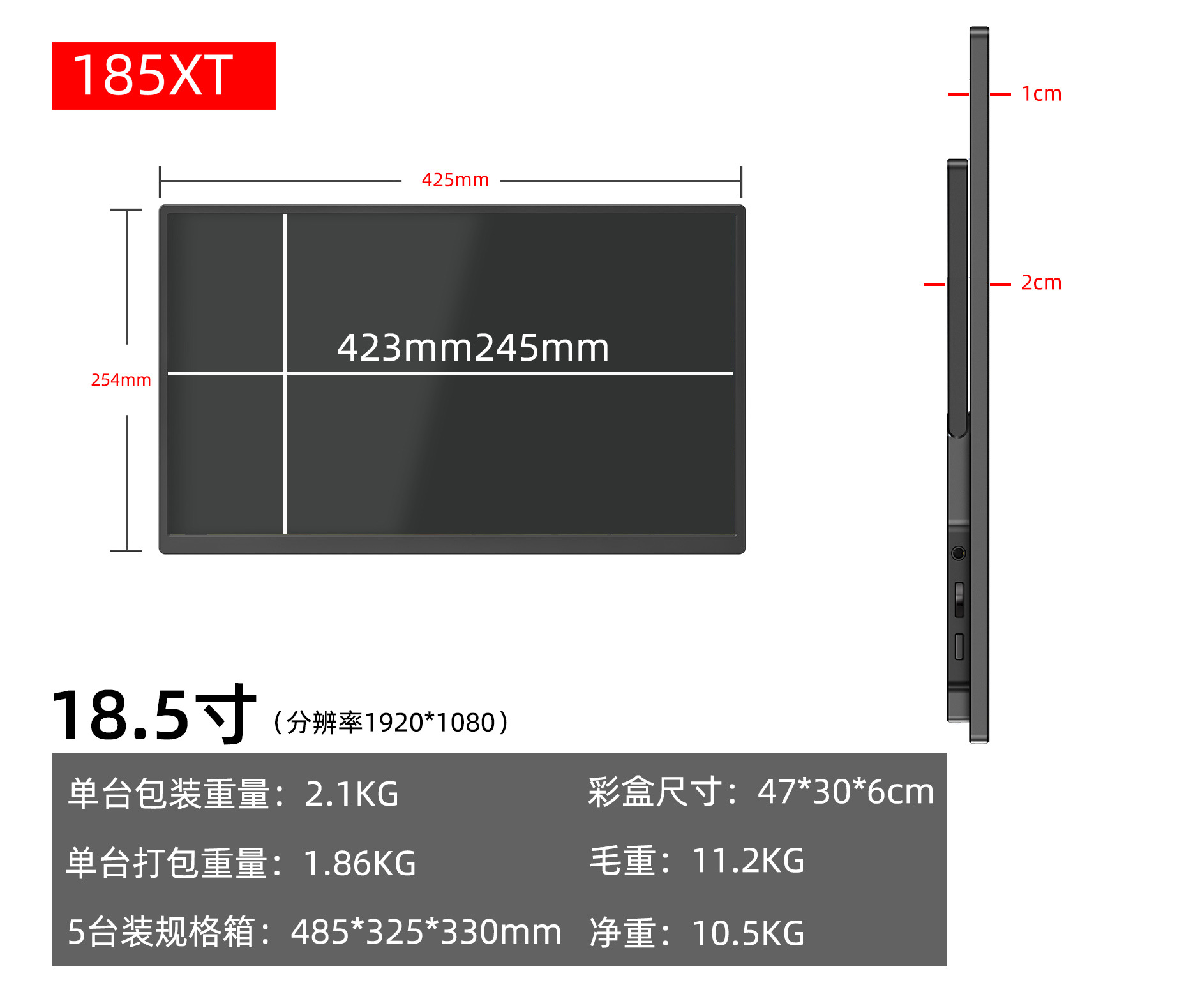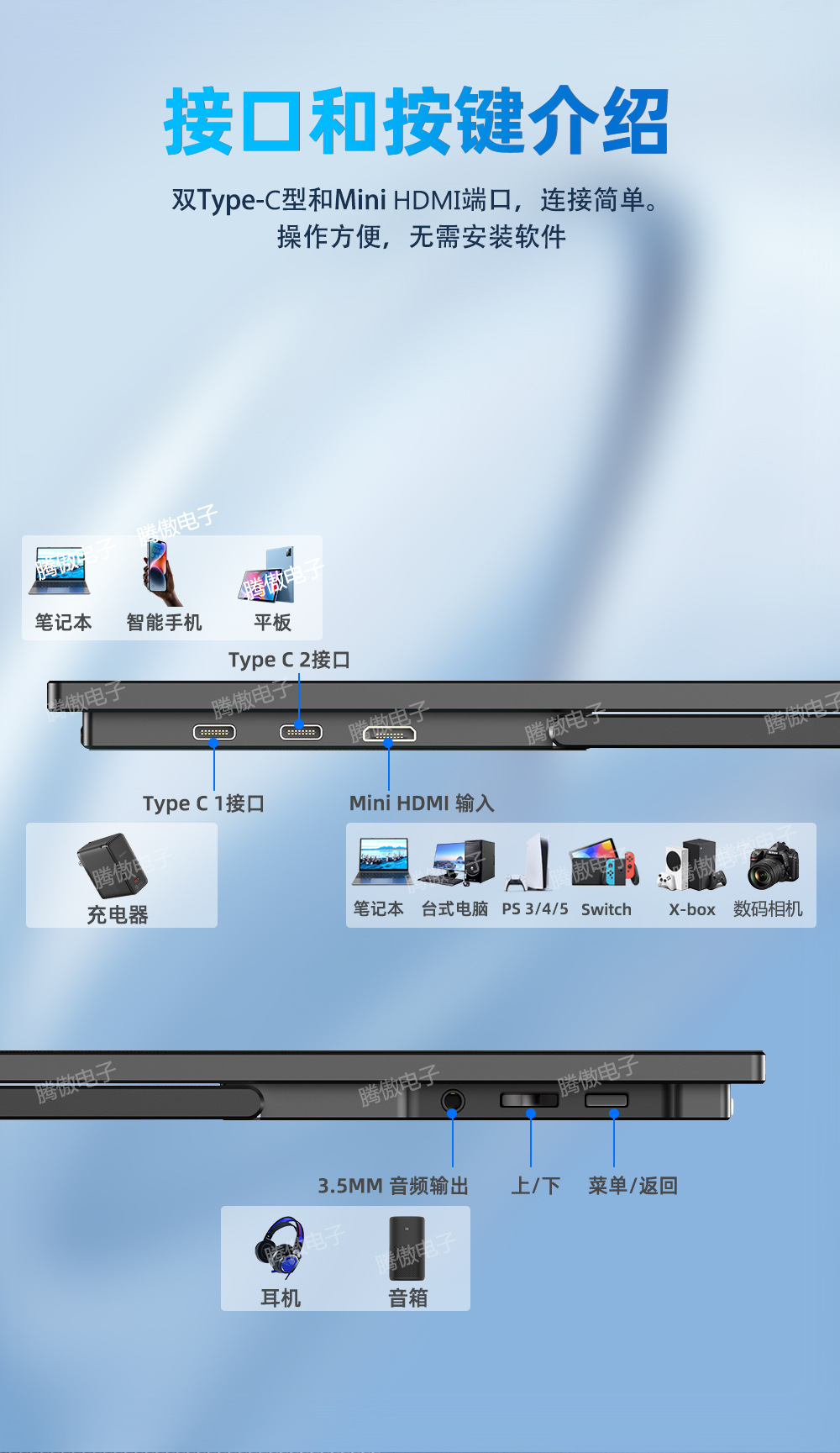 노트북 동일 화면 18.5inch 휴대용 모니터 터치 하이 브러시 120HZ 스위치/PS5 휴대폰 확장
