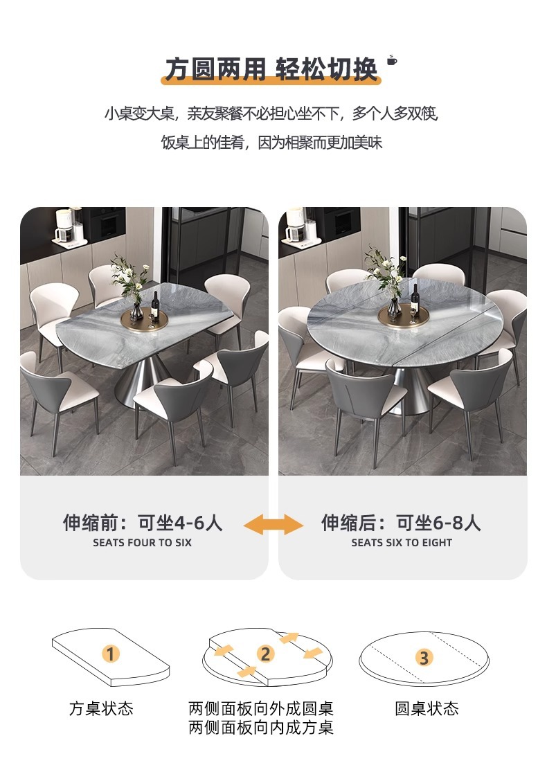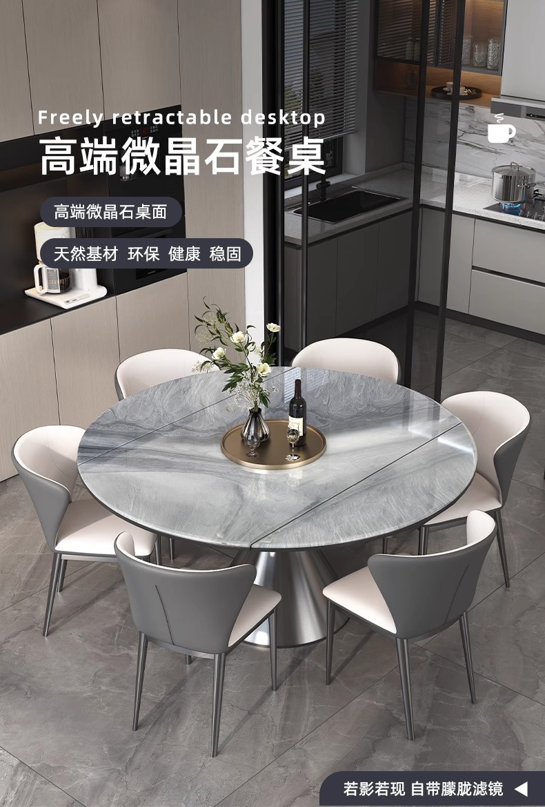천연 미세 결정 개폐식 라운드 식탁 홈 하이 엔드 새로운 작은 아파트 대리석 고급 이탈리아 조명 럭셔리