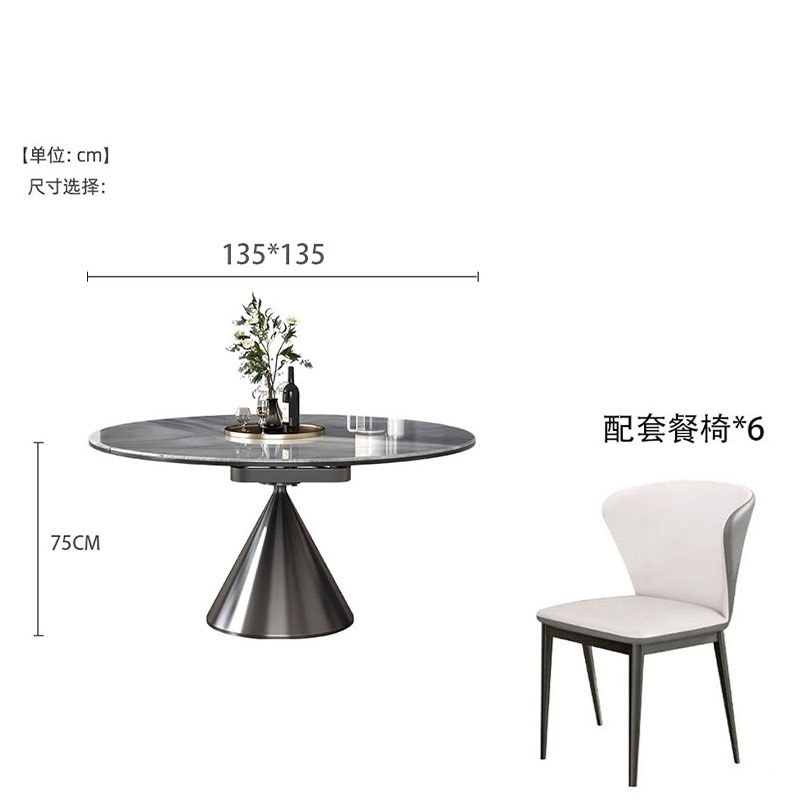 • 1.35m 천연 미세 결정 망원경 식탁 + 고양이 긁기 가죽 식당 의자 * 6