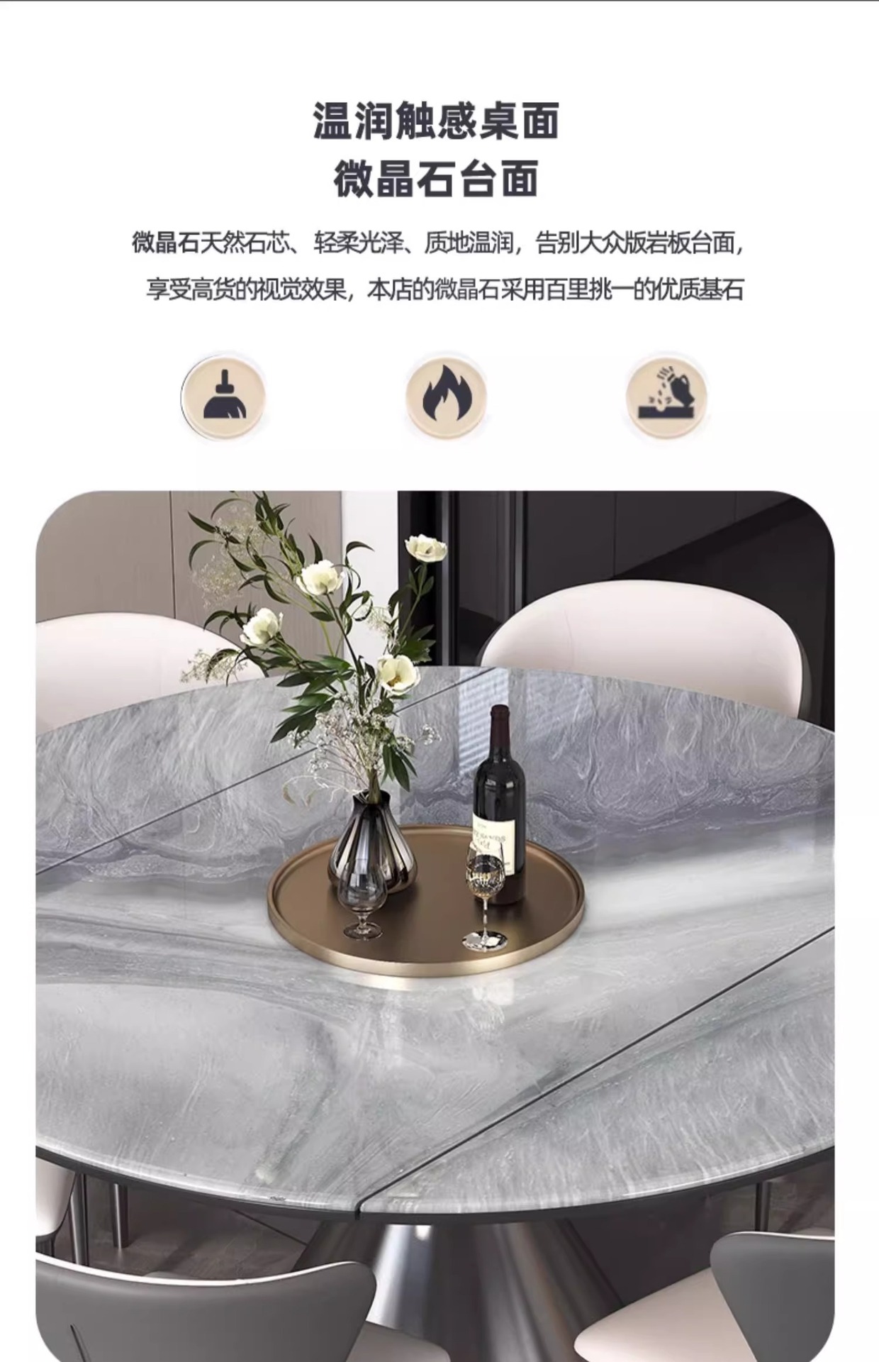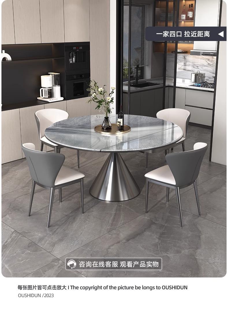 천연 미세 결정 개폐식 라운드 식탁 홈 하이 엔드 새로운 작은 아파트 대리석 고급 이탈리아 조명 럭셔리스토어 가기