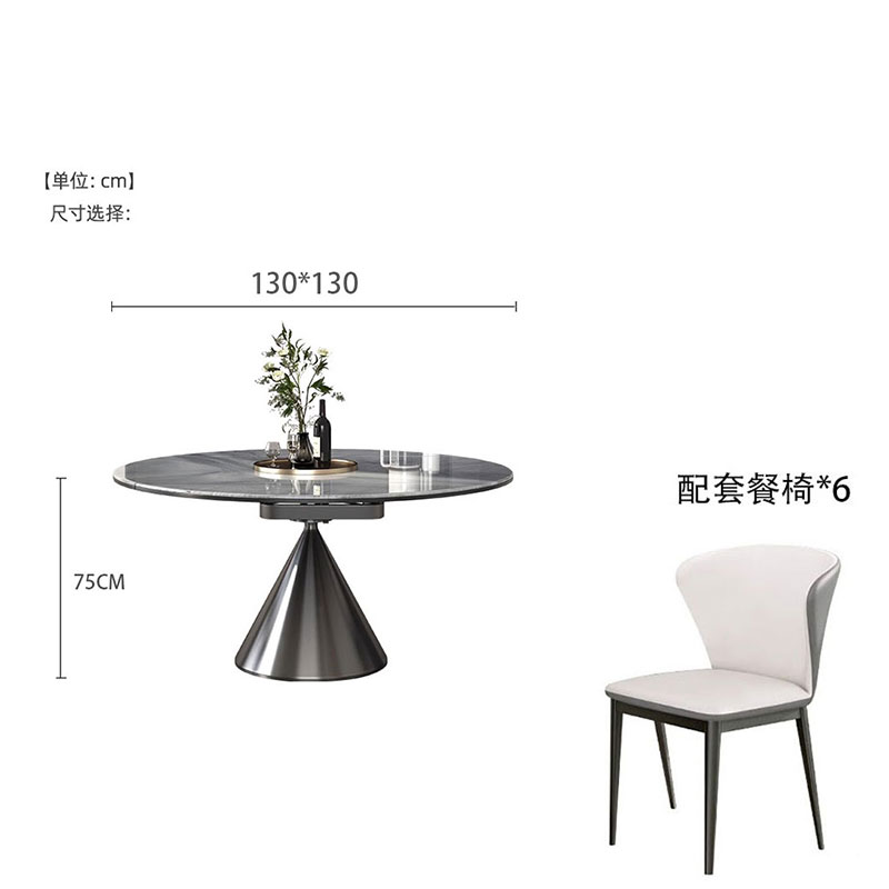 • 1.3m 천연 미세 결정 망원경 식탁 + 고양이 긁기 가죽 식당 의자 * 6