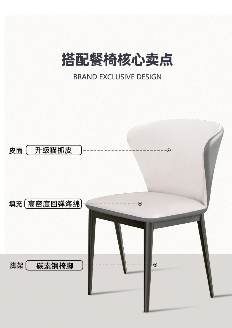 • 1.5m 천연 미세 결정 망원경 식탁 + 고양이 긁기 가죽 식당 의자 * 4