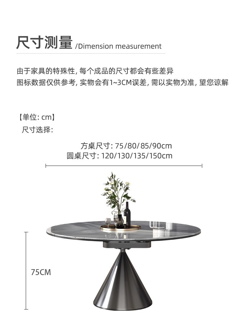 • 1.35m 천연 미세 결정 돌 개폐식 식탁
