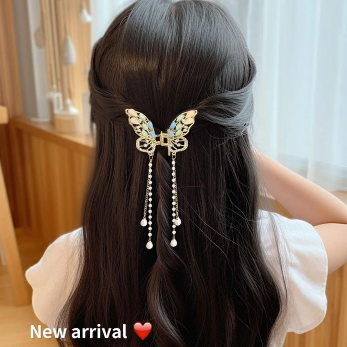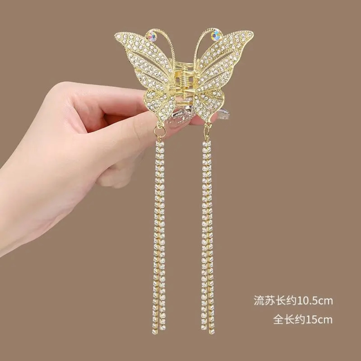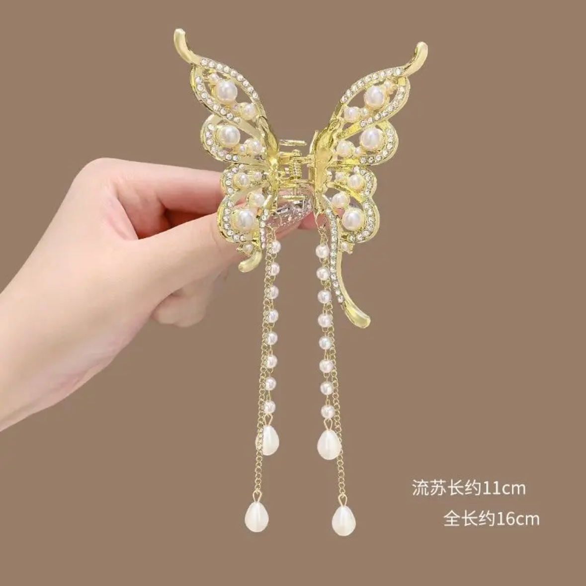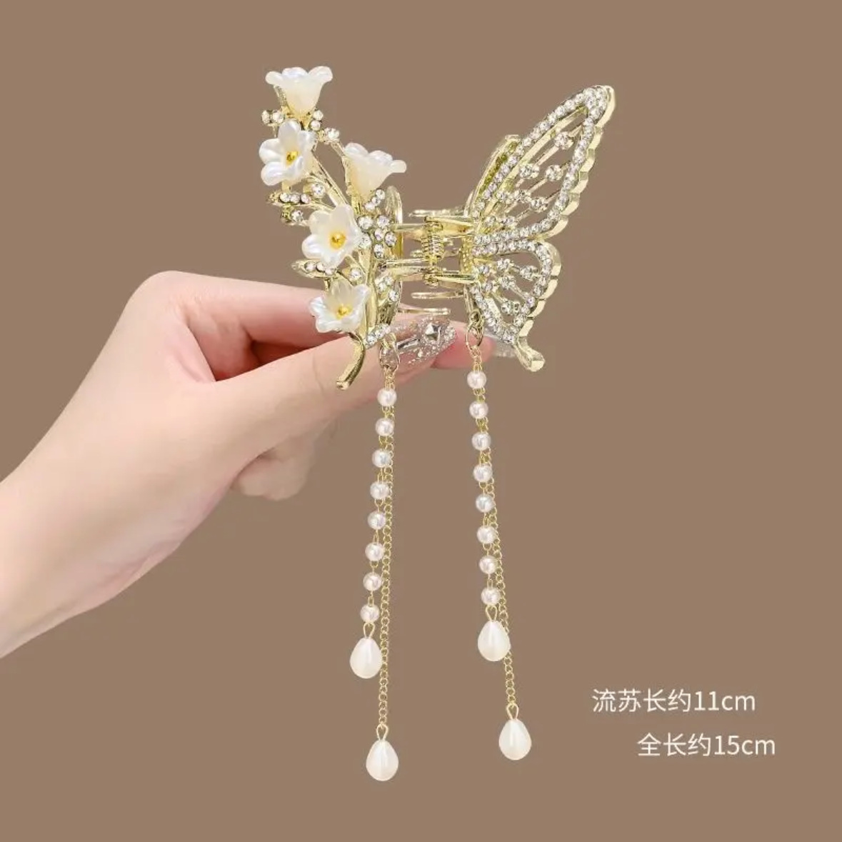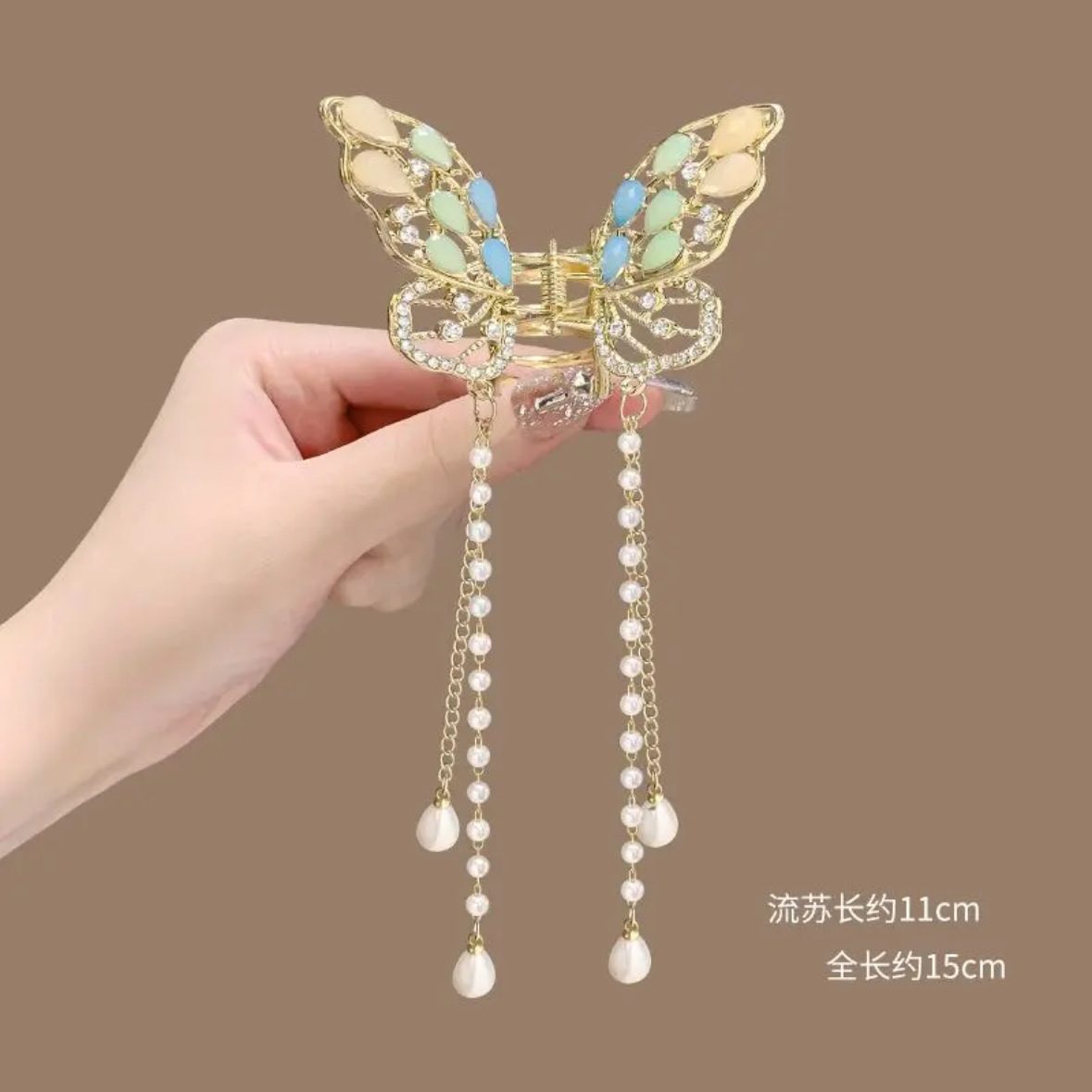 2024 이른 봄 슈퍼 요정 나비 태슬 머리핀 기질 소녀 반쯤 묶인 뒤 머리 updo 상어 클립 헤어 클립 헤어 액세서리스토어 가기
