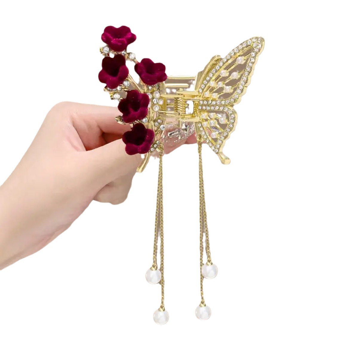 2024 이른 봄 슈퍼 요정 나비 태슬 머리핀 기질 소녀 반쯤 묶인 뒤 머리 updo 상어 클립 헤어 클립 헤어 액세서리