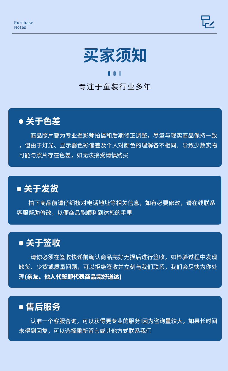 各位亲好,小店新开不久,本店所有产品都是优惠出售,有什么问题可以联系客服解决,希望 亲们一定给我们五星好评,因为经营一个小店真的很不容易,谢谢亲们理解