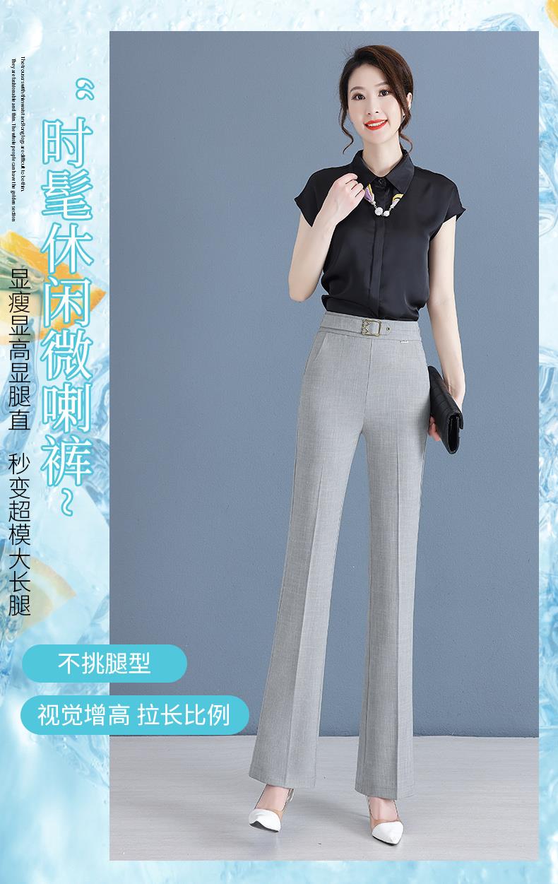 여성을 위한 얇은 부츠컷 팬츠 2025 여름 새로운 스타일의 패셔너블한 루즈 캐주얼 팬츠 하이웨이스트 플레어 드레이프 팬츠스토어 가기