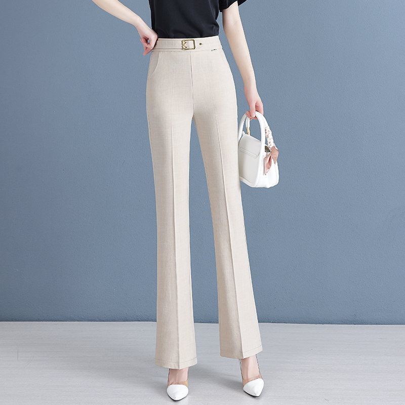 여성을 위한 얇은 부츠컷 팬츠 2025 여름 새로운 스타일의 패셔너블한 루즈 캐주얼 팬츠 하이웨이스트 플레어 드레이프 팬츠