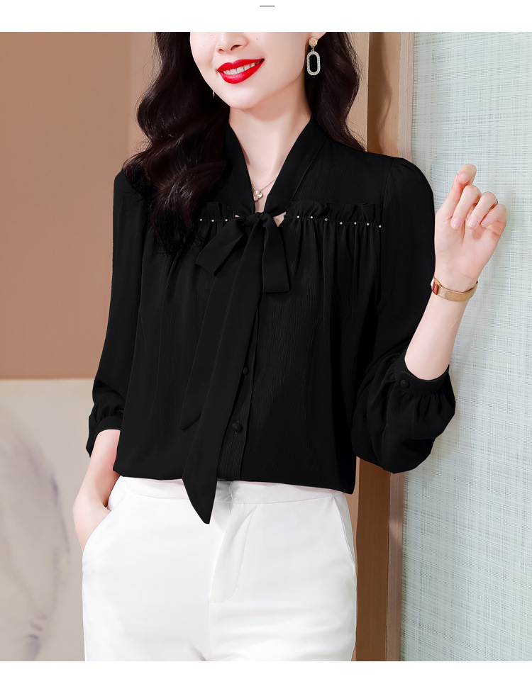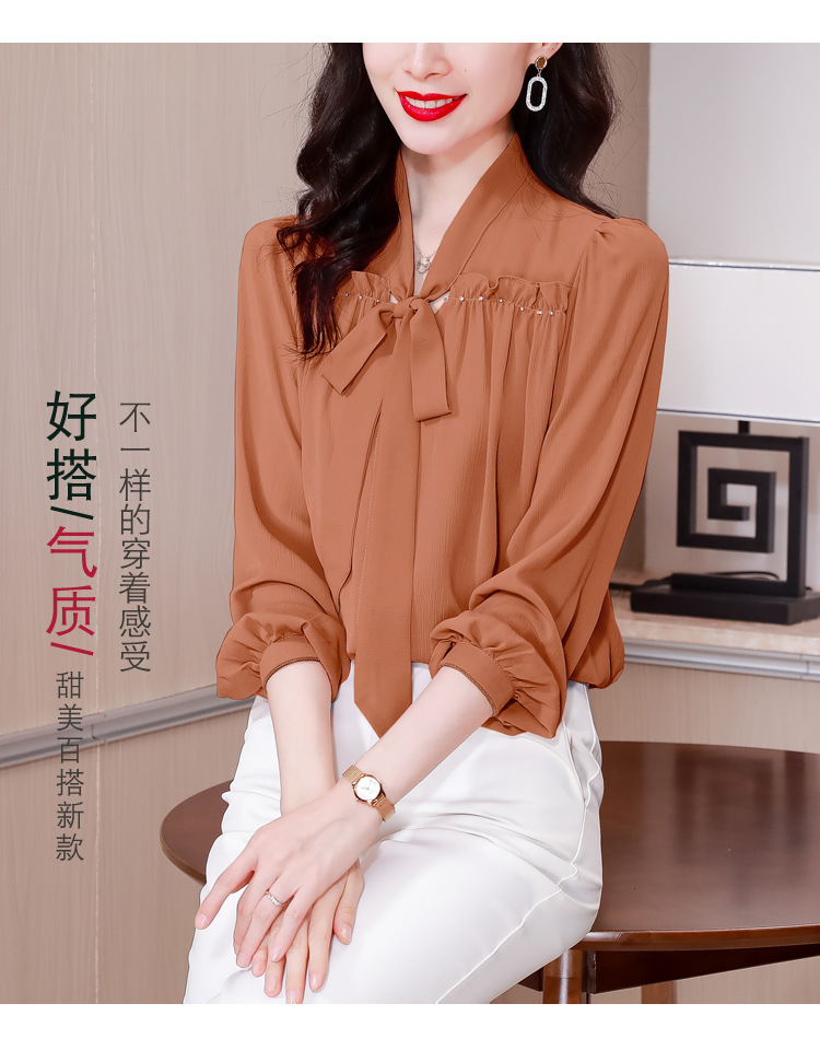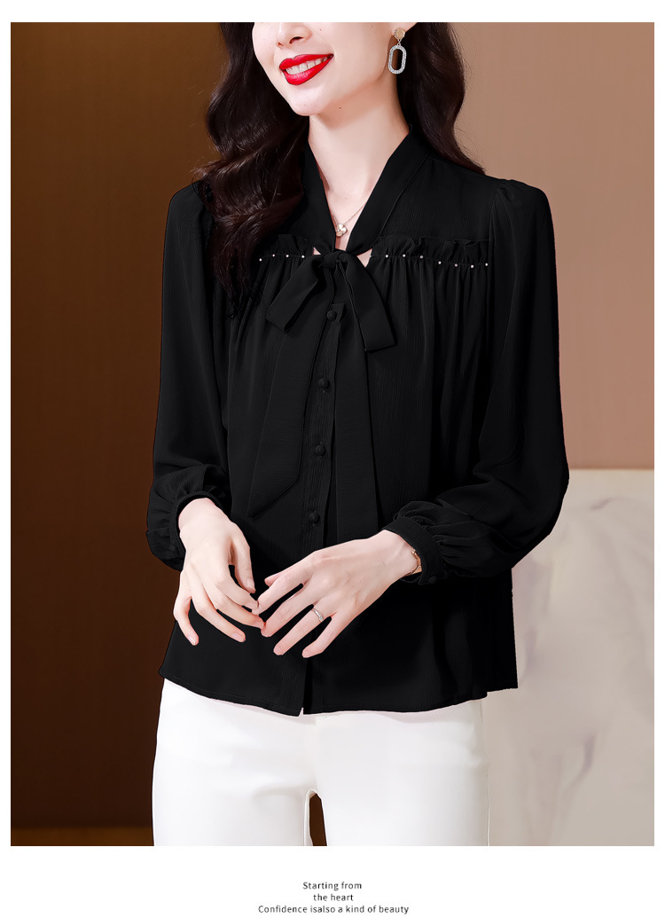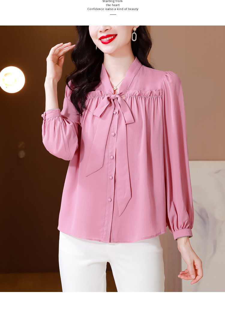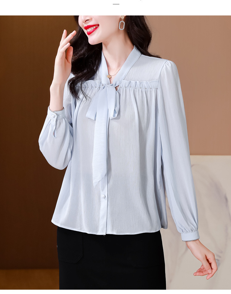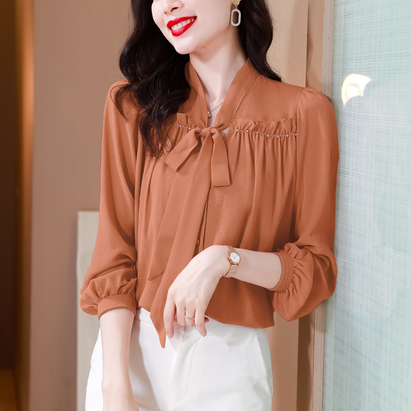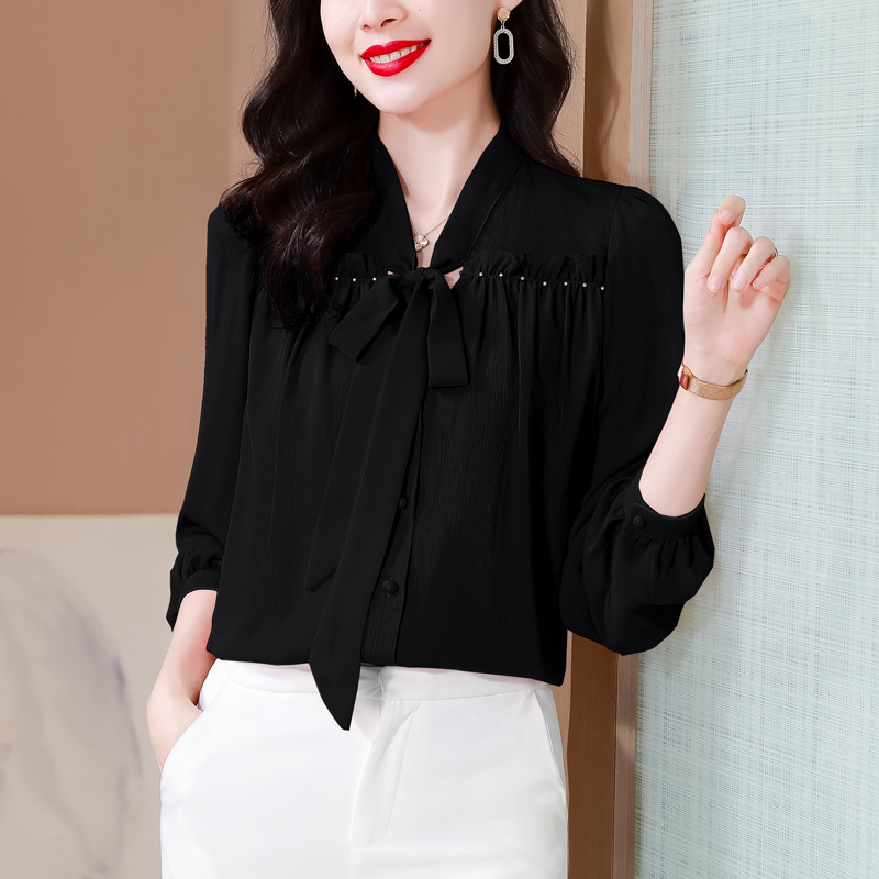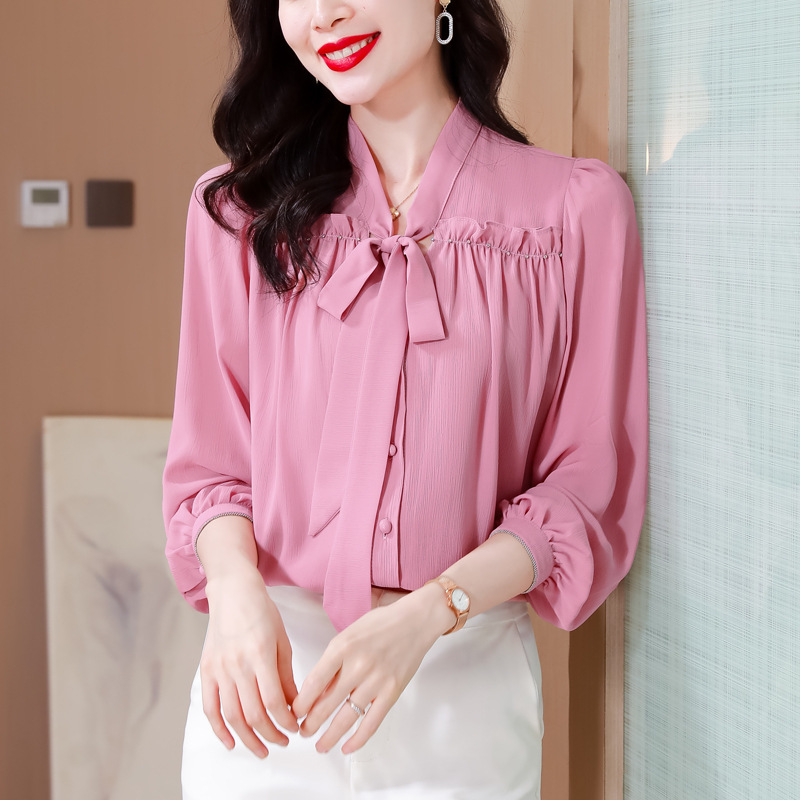중년 어머니의 쉬폰 셔츠 최고 여성 봄 2024 뉴 에이지-프랑스 세련된 아름다운 긴 소매 셔츠 패션 감소