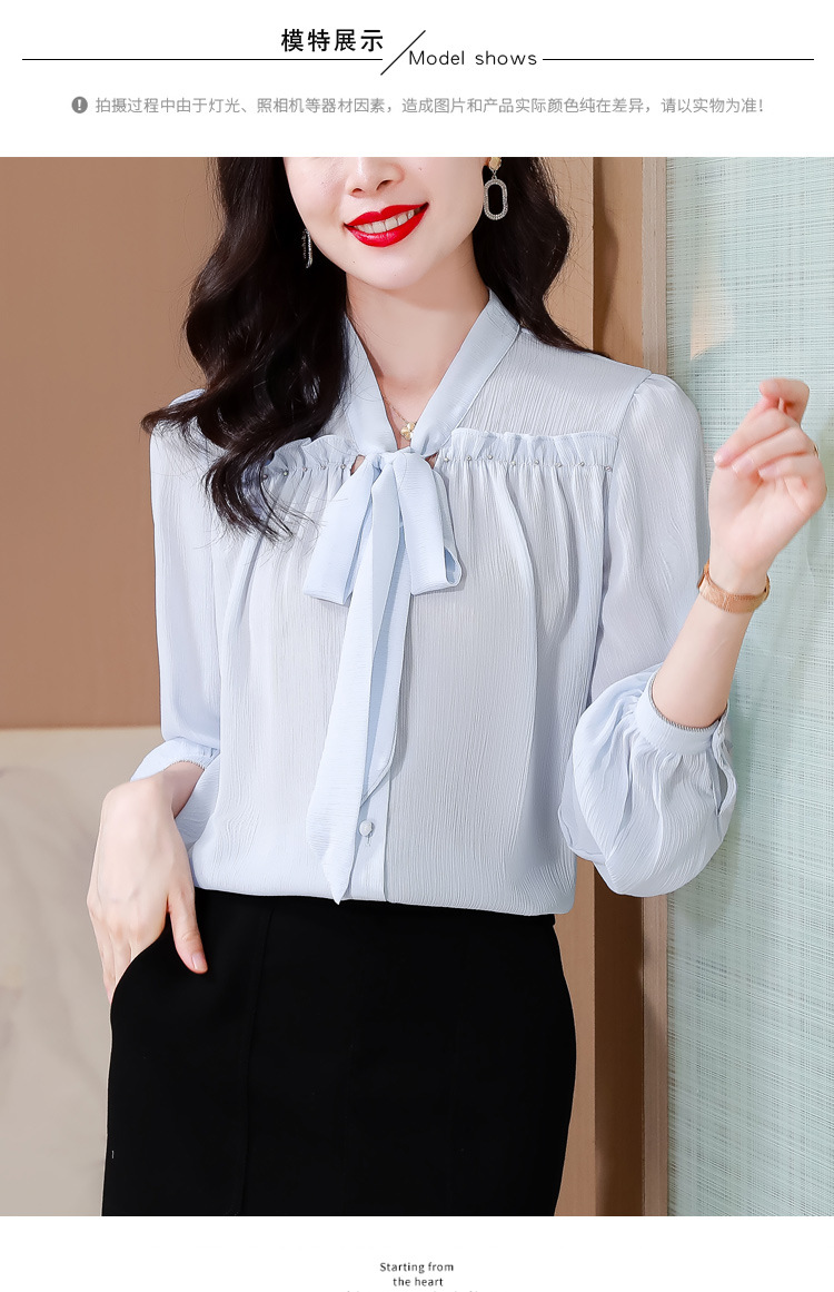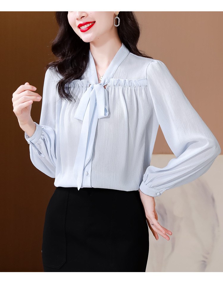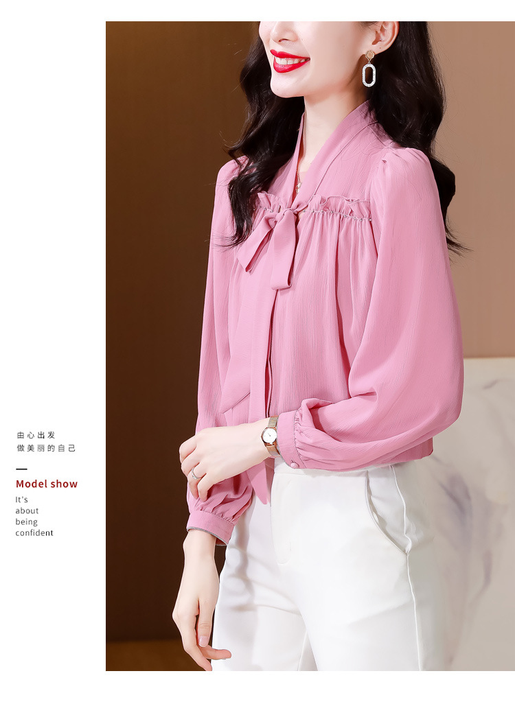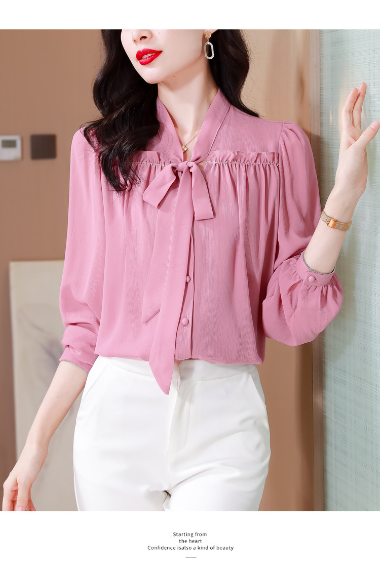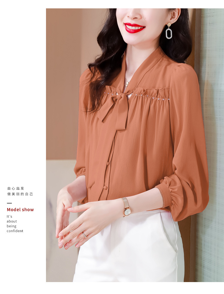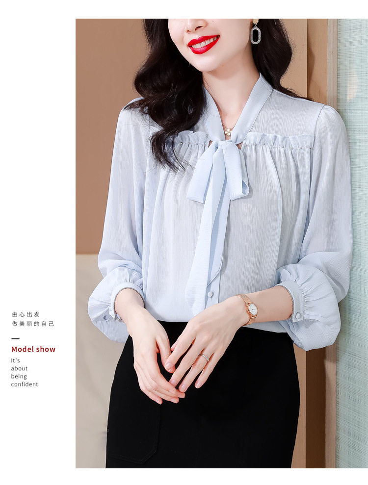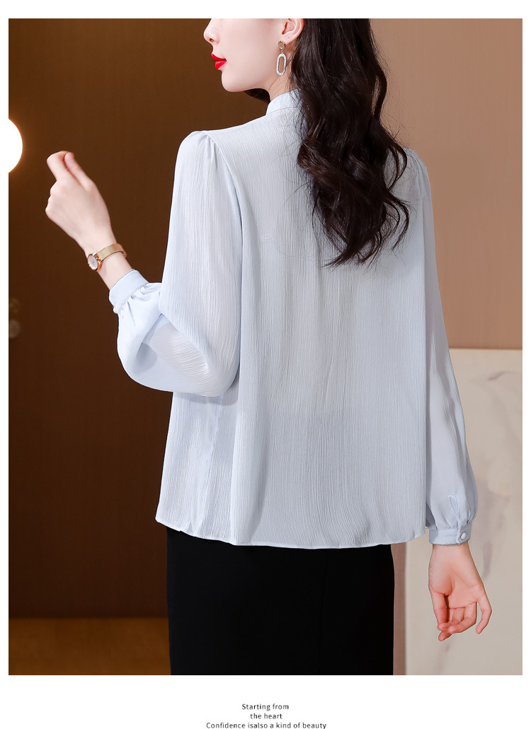 중년 어머니의 쉬폰 셔츠 최고 여성 봄 2024 뉴 에이지-프랑스 세련된 아름다운 긴 소매 셔츠 패션 감소