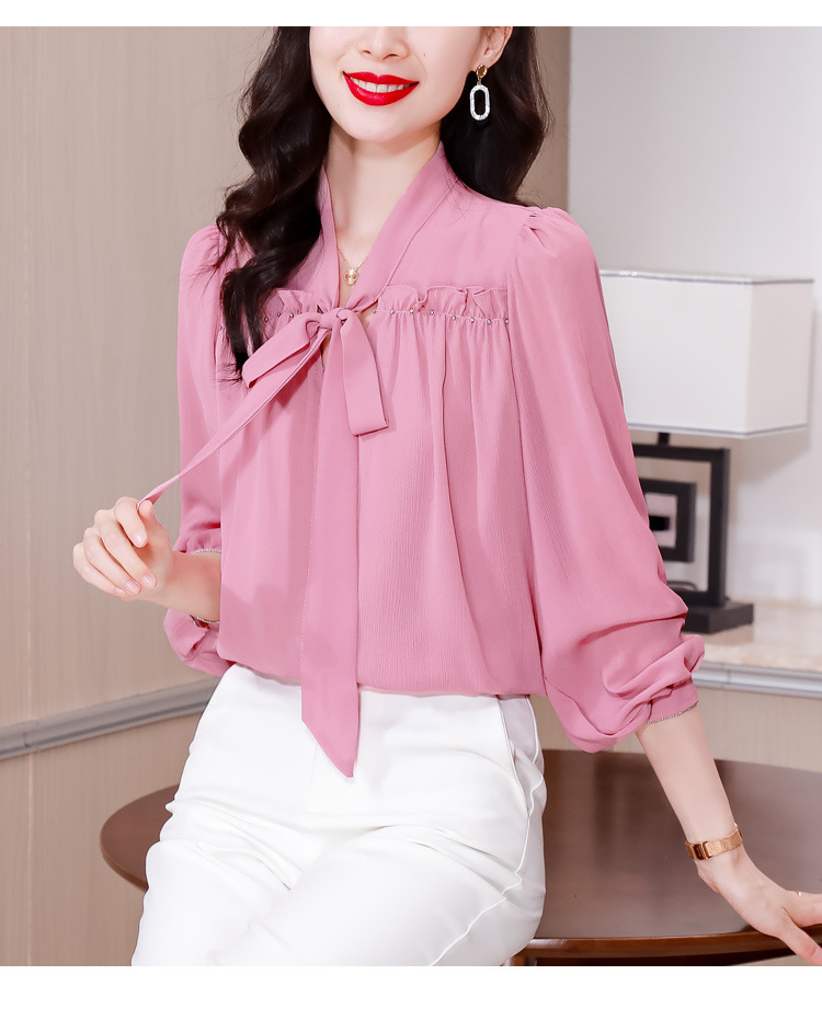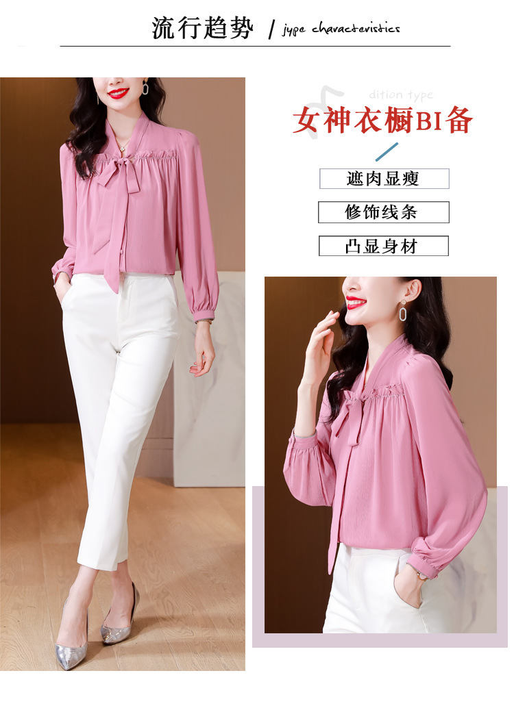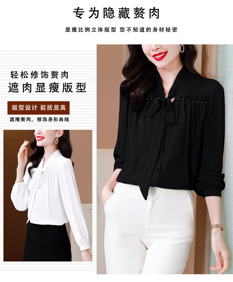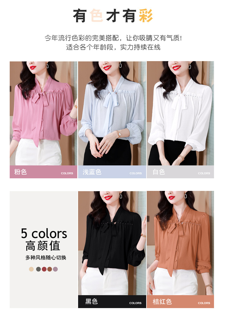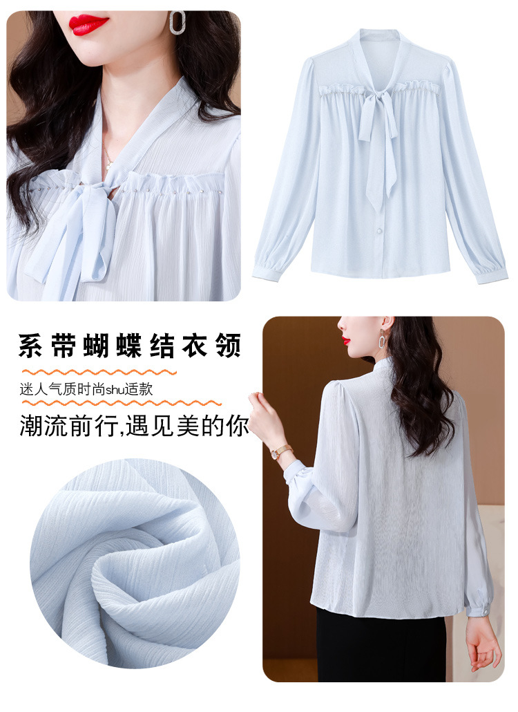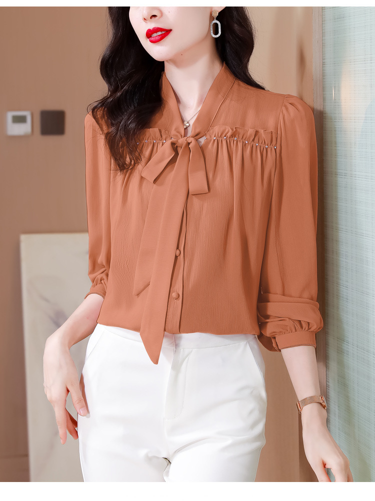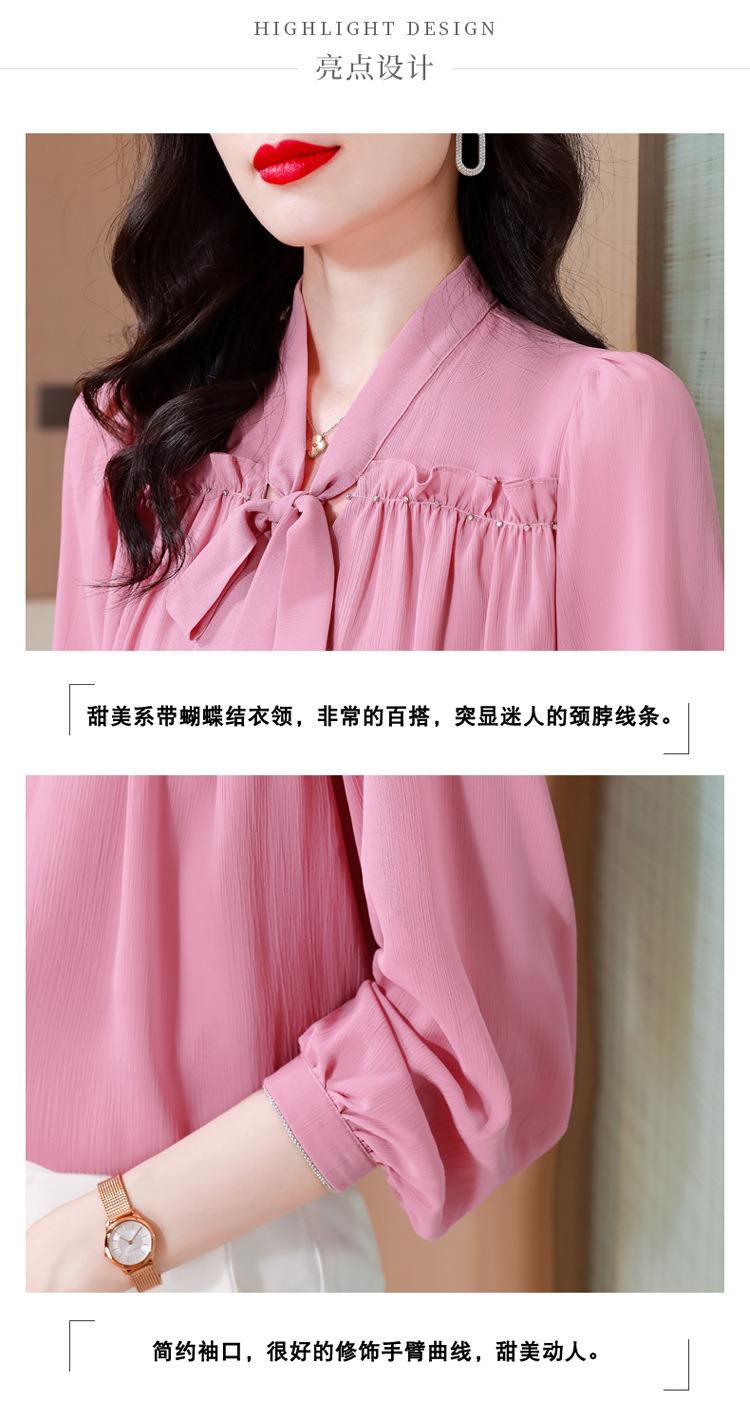 중년 어머니의 쉬폰 셔츠 최고 여성 봄 2024 뉴 에이지-프랑스 세련된 아름다운 긴 소매 셔츠 패션 감소