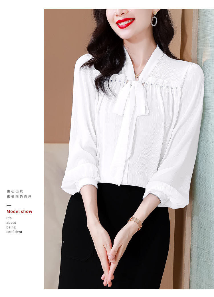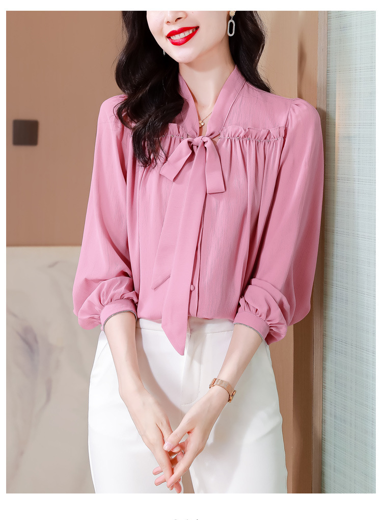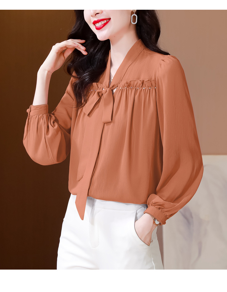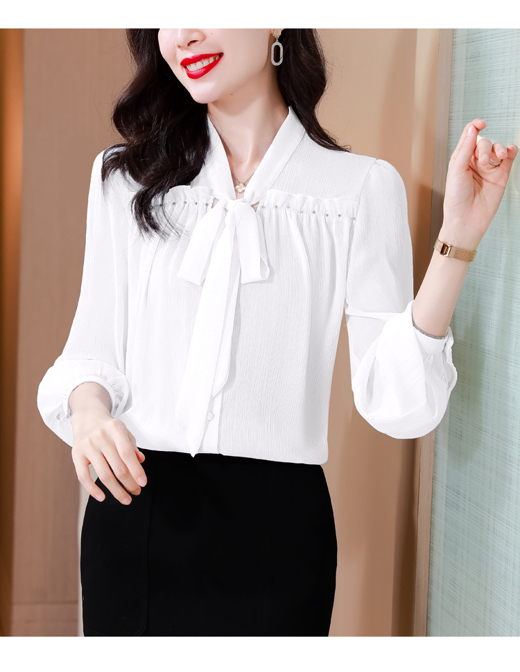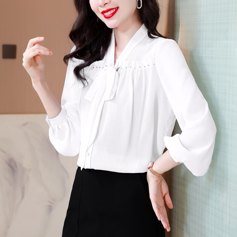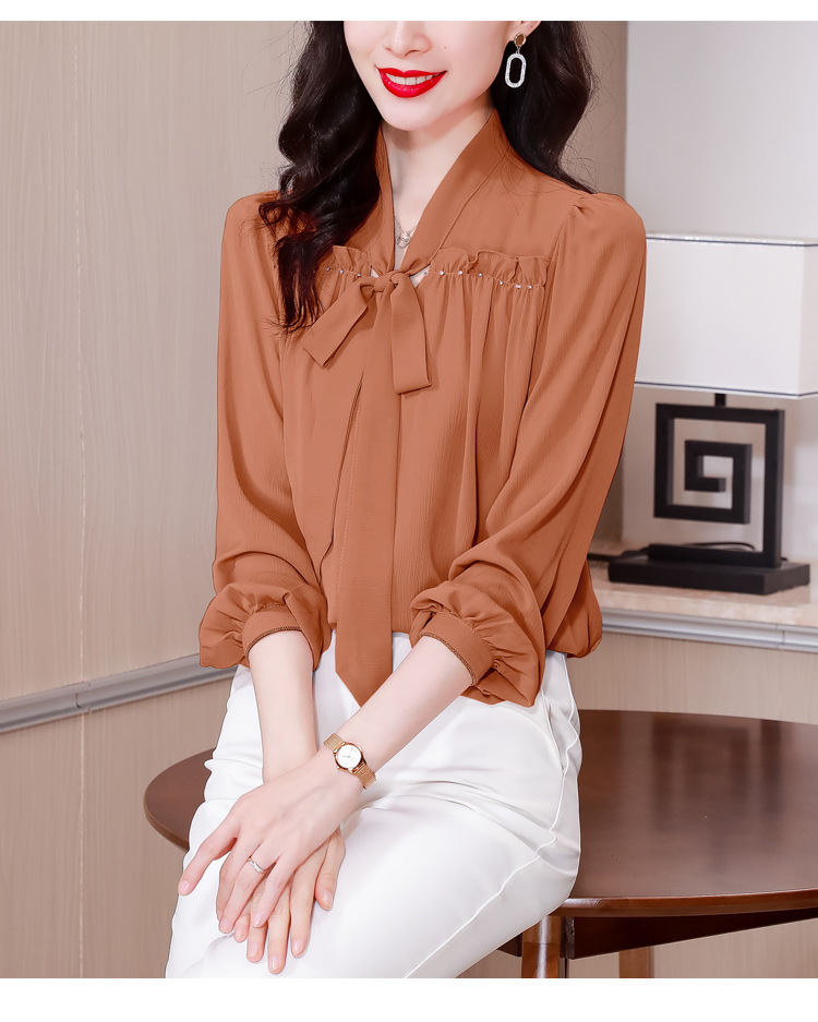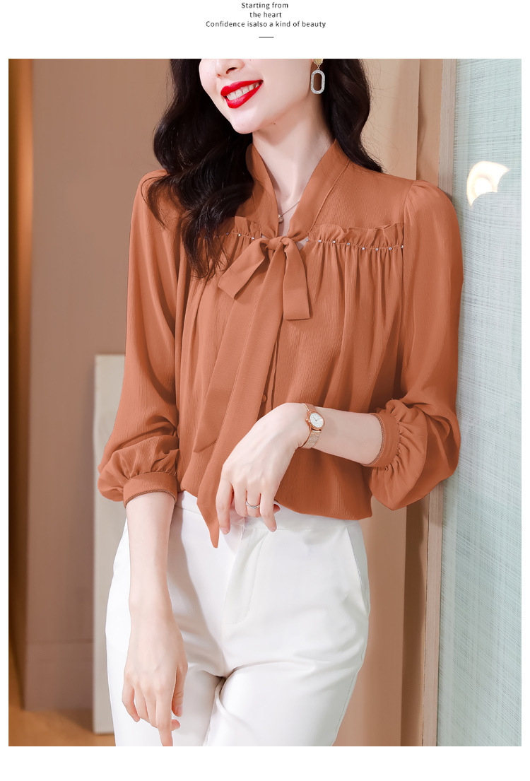 중년 어머니의 쉬폰 셔츠 최고 여성 봄 2024 뉴 에이지-프랑스 세련된 아름다운 긴 소매 셔츠 패션 감소