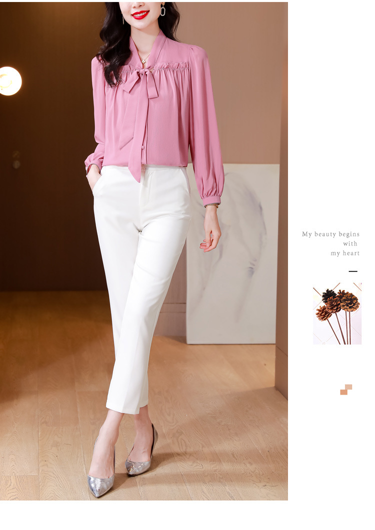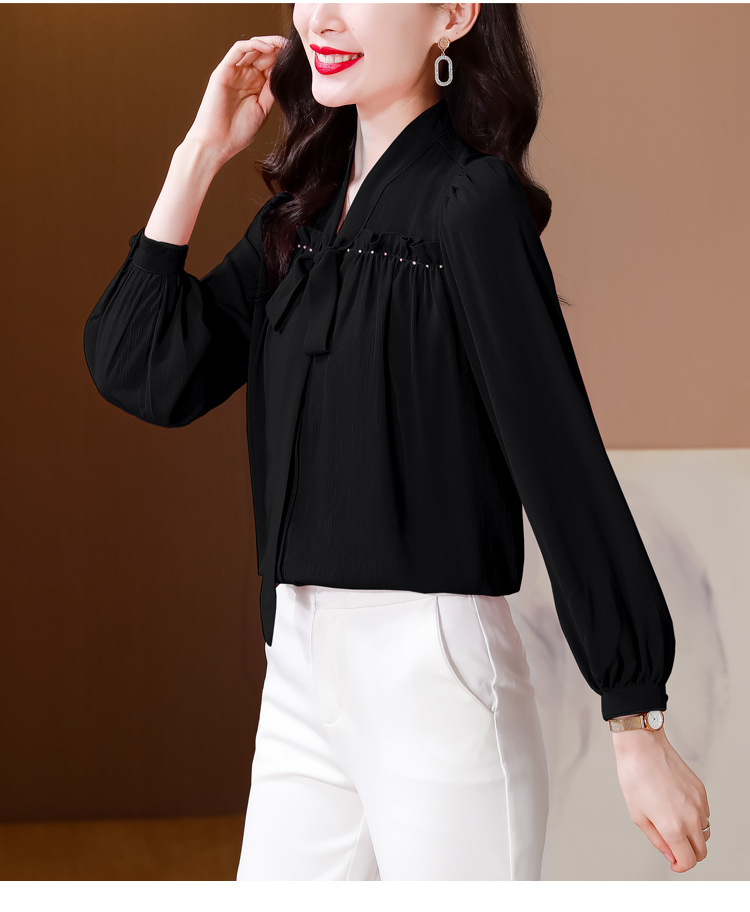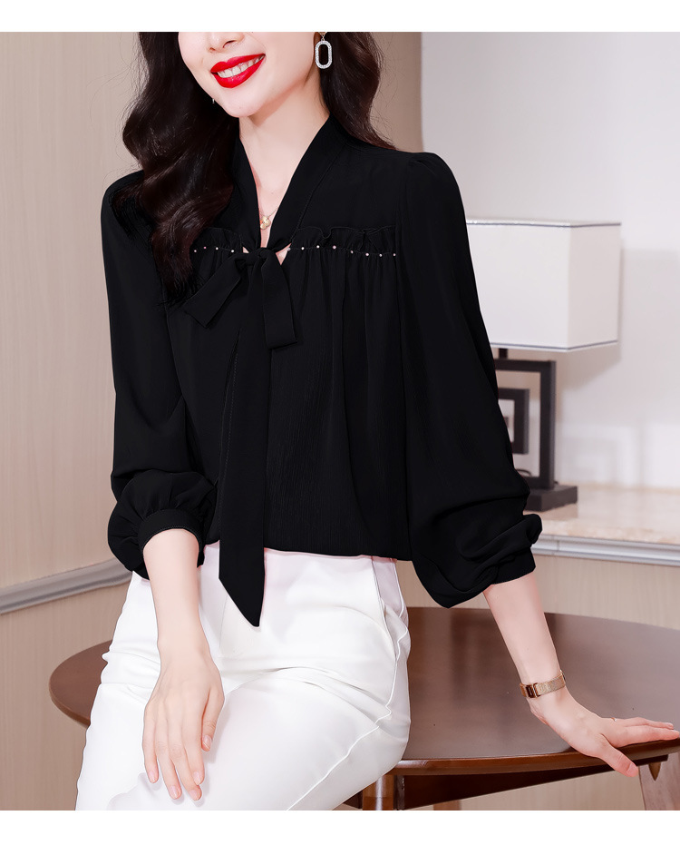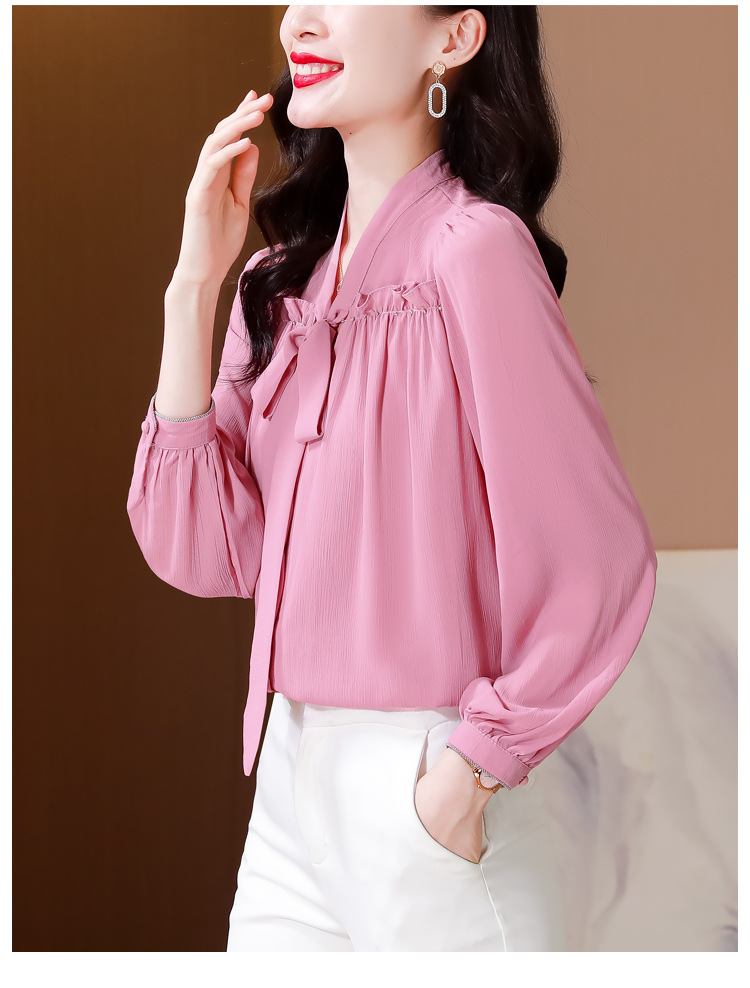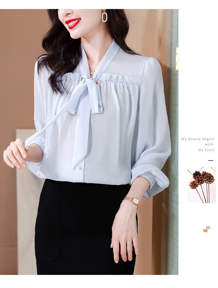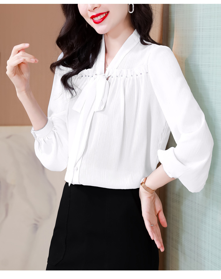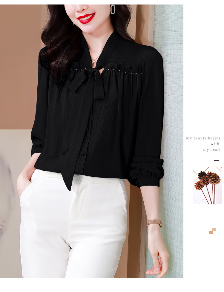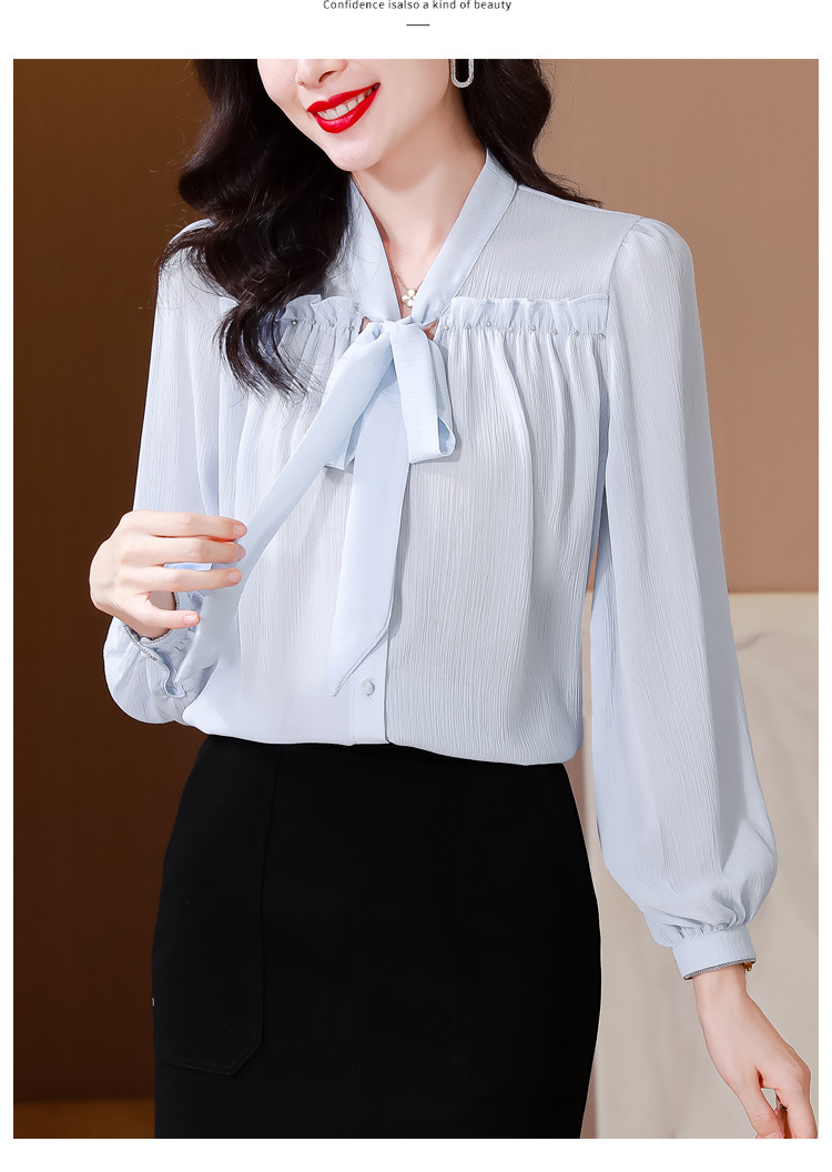 중년 어머니의 쉬폰 셔츠 최고 여성 봄 2024 뉴 에이지-프랑스 세련된 아름다운 긴 소매 셔츠 패션 감소