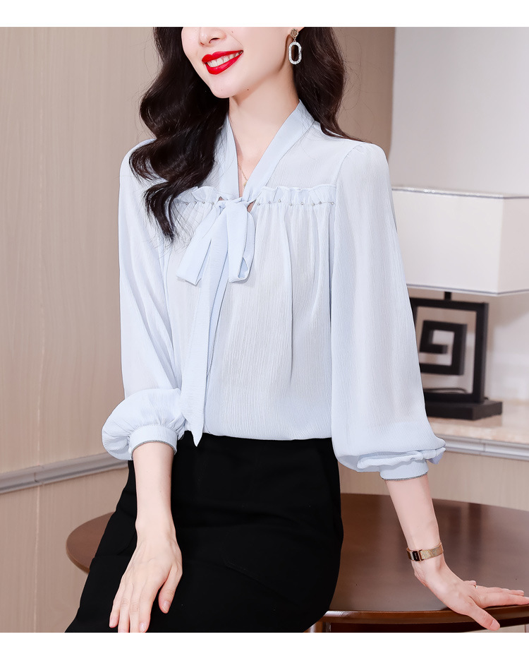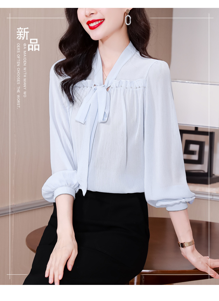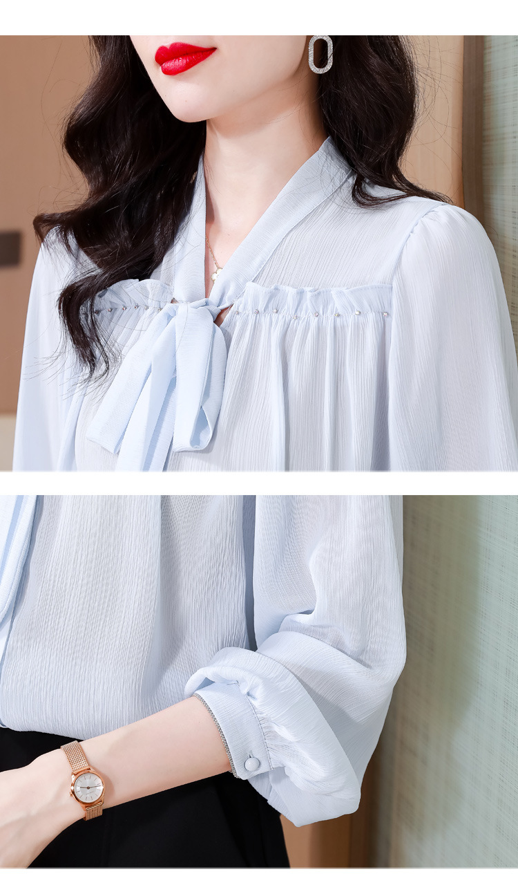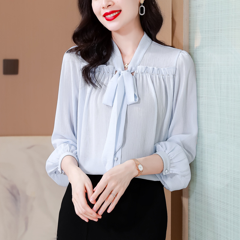 중년 어머니의 쉬폰 셔츠 최고 여성 봄 2024 뉴 에이지-프랑스 세련된 아름다운 긴 소매 셔츠 패션 감소스토어 가기